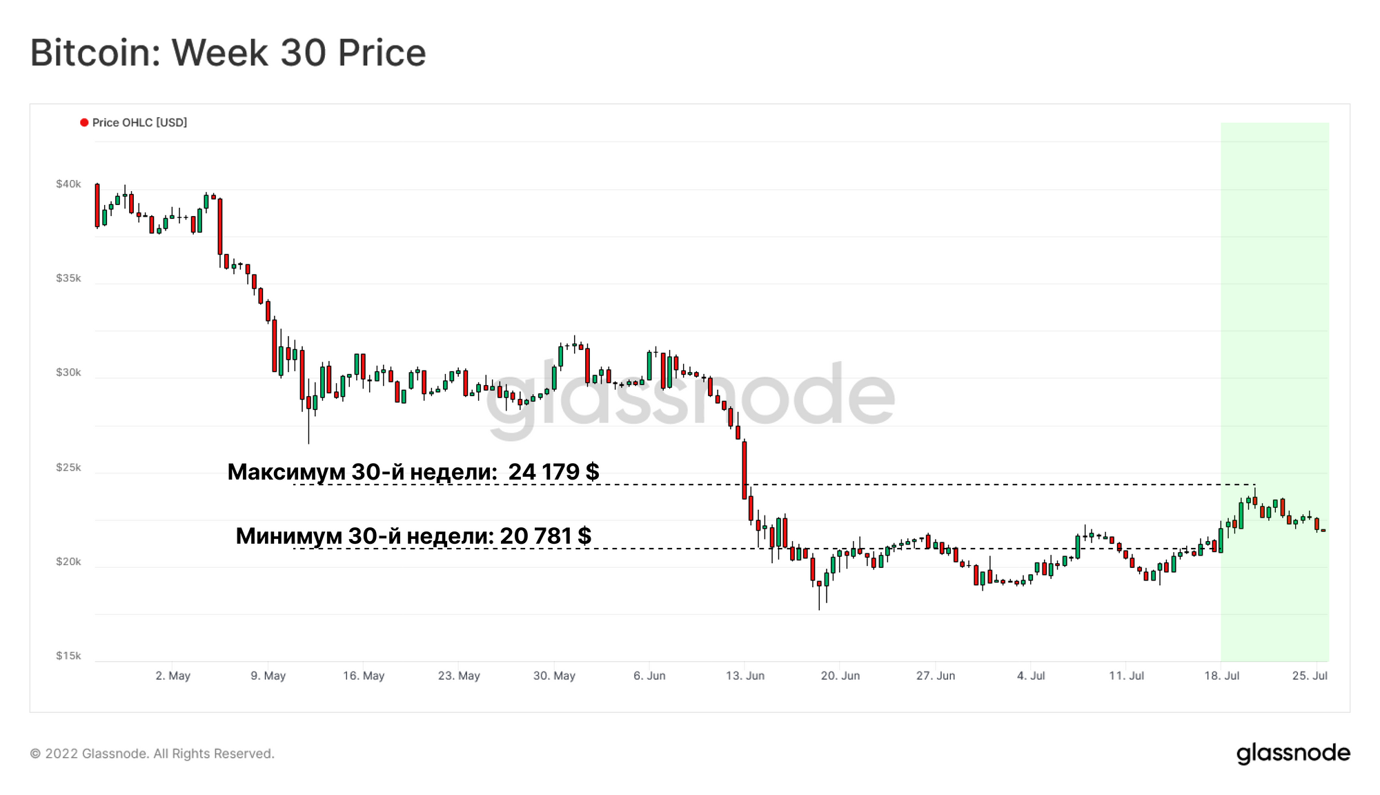 После месяца консолидации биткоин испытал долгожданное ралли “облегчения”, закрывшись на 9% выше уровня открытия прошедшей недели. Ценовое движение началось на уровне $ 20,781, поднялось до пика в $ 24,179, прежде чем откатиться к максимумам диапазона консолидации за выходные.