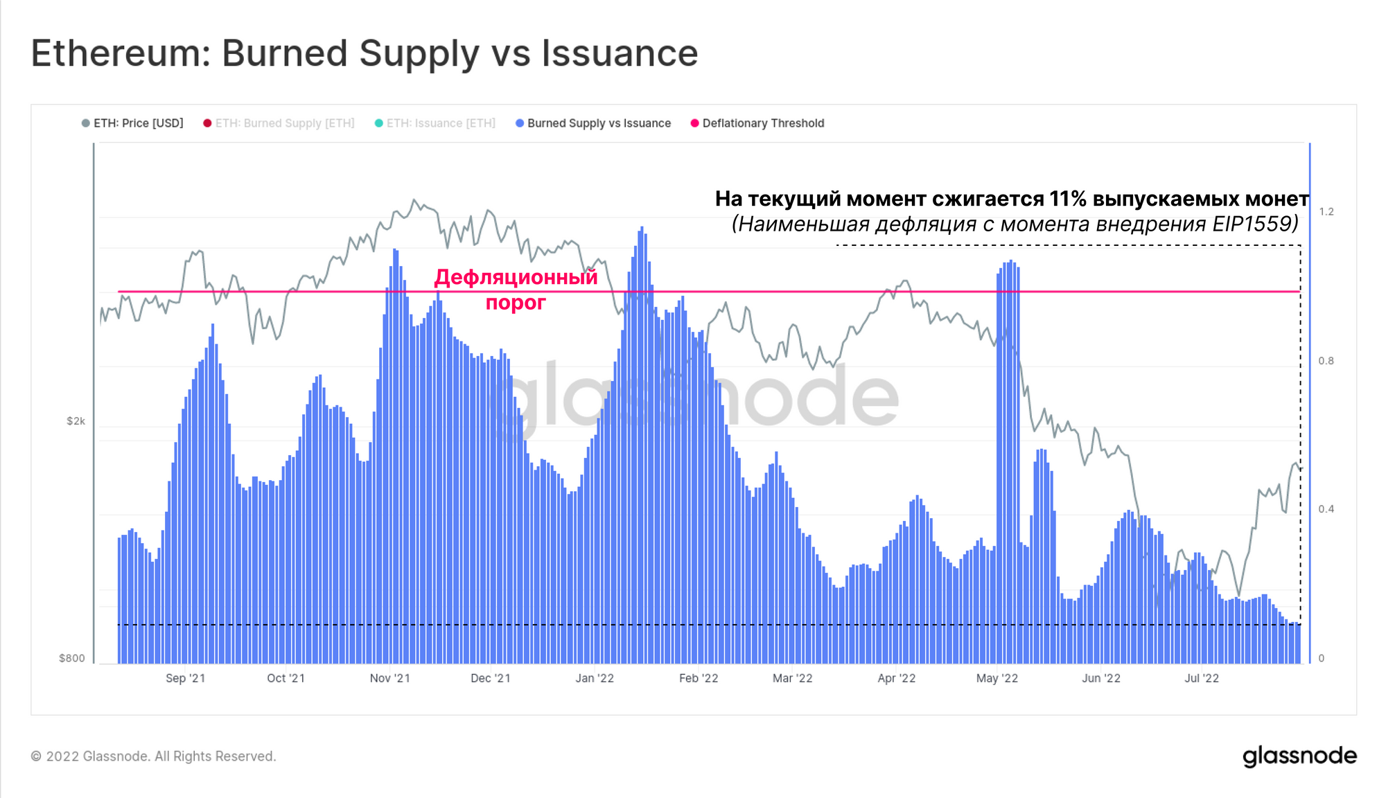 Это фактически означает, что в обращение поступает относительно большой объем ETH по сравнению со всей историей после внедрения EIP1559.