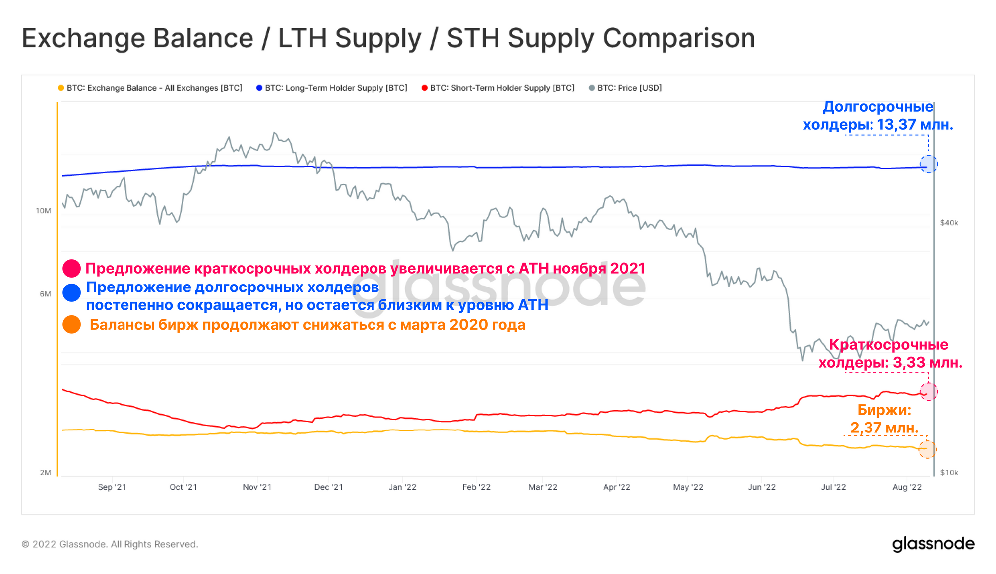 - Для получения автоматических оповещений об основных он-чейн показателях внутри сети и активности на биржах переходите на наш твиттер Glassnode Alerts.