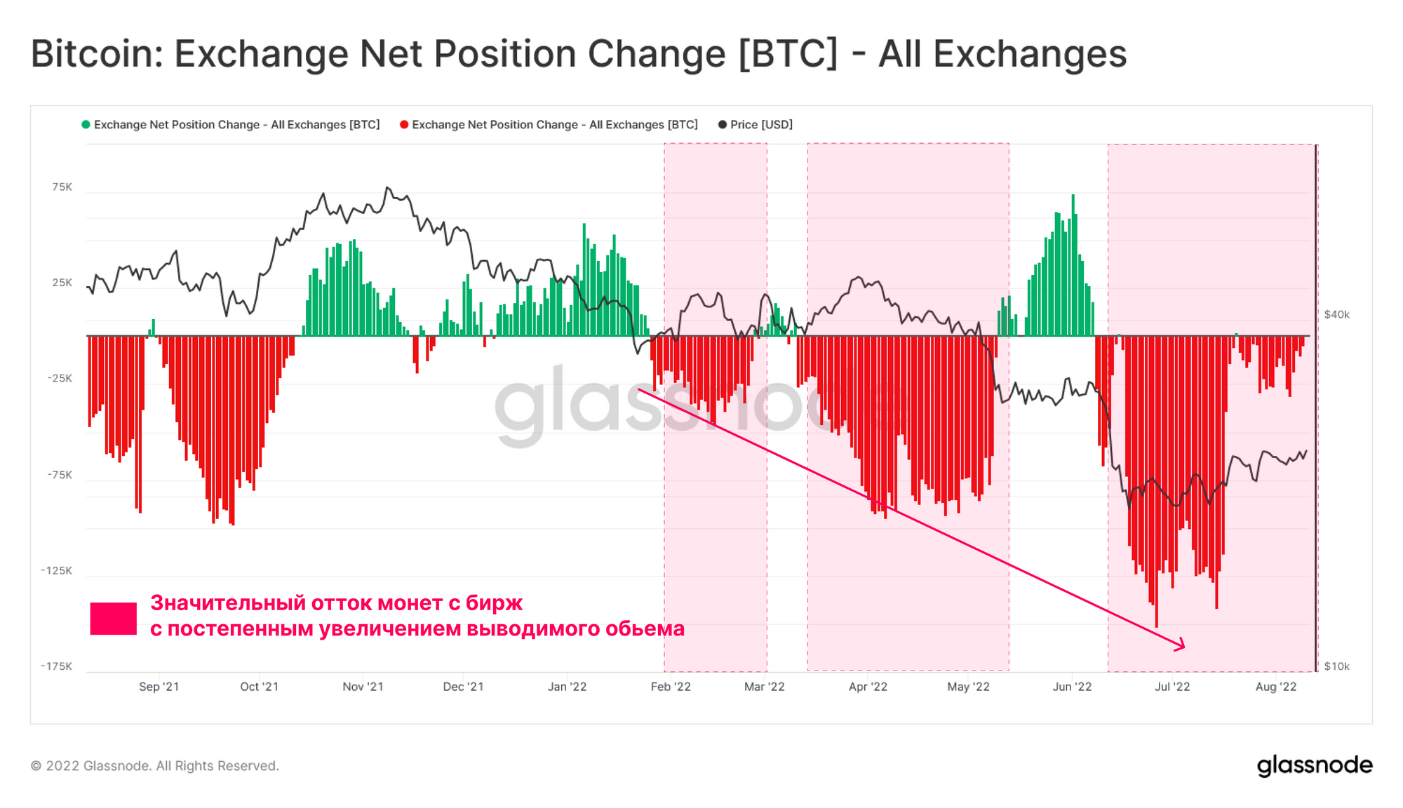 В целом, после капитуляции LUNA в мае 2022 года на биржах наблюдался чистый отток в размере 100 тыс. BTC, что составляет 3,2% от общего оттока с ATH в марте 2020 года .