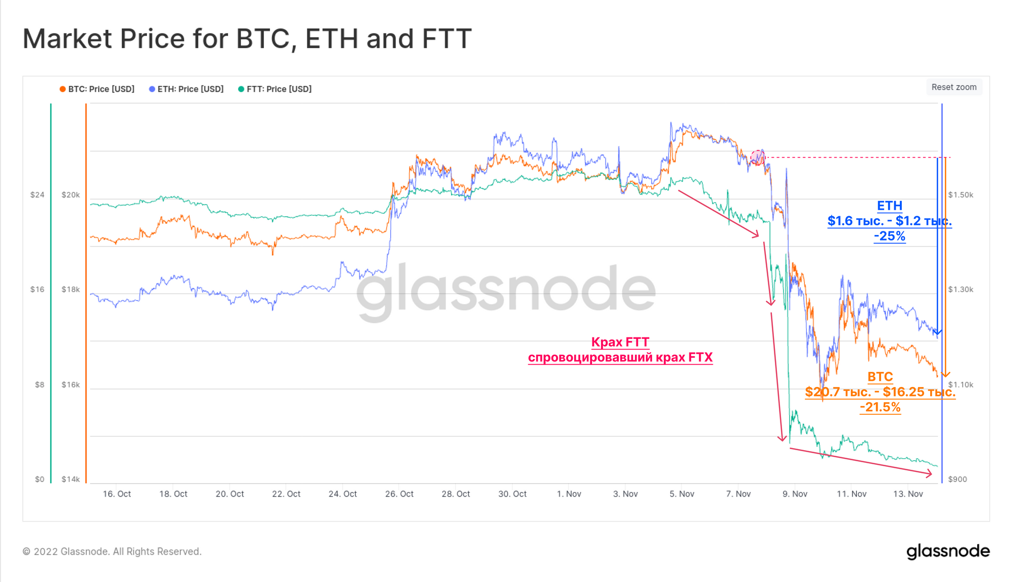 События, происходившие в индустрии цифровых активов в период с 6 по 14 ноября 2022 года, были, мягко говоря, шокирующими и разочаровывающими. Всего за одну неделю одна из самых популярных бирж с большим объемом торговли, FTX.com;