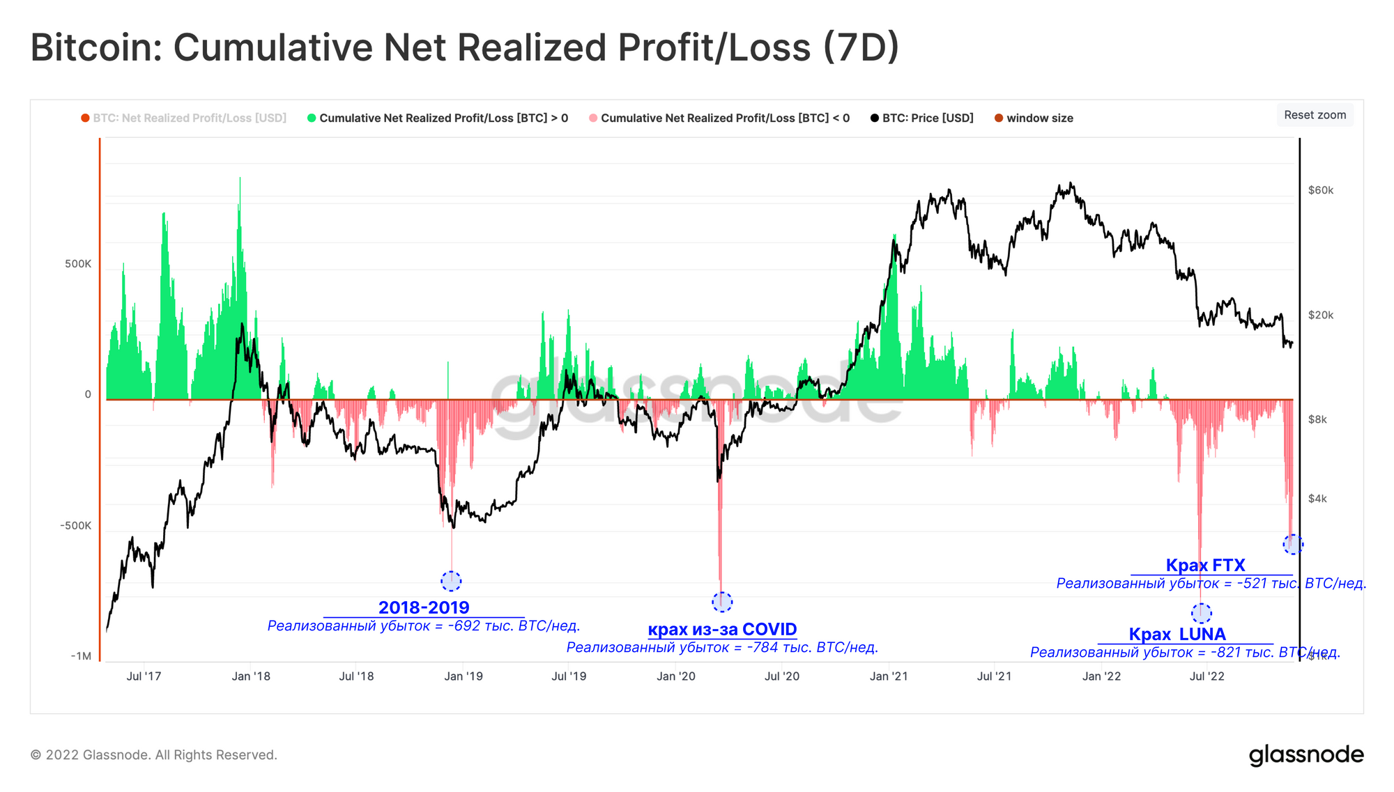 В выпуске этой недели мы рассмотрим масштабы реализованных и нереализованных убытков среди Биткоин-холдеров, возникших в результате одного из самых тяжелых периодов капитуляции в истории рынка. Мы также проанализируем изменение тенденций в поведении участников рынка, произошедшее после краха FTX, и то, что это говорит нам о более глобальной картине, а также о последующем влиянии на уверенность инвесторов и истощение продавца.