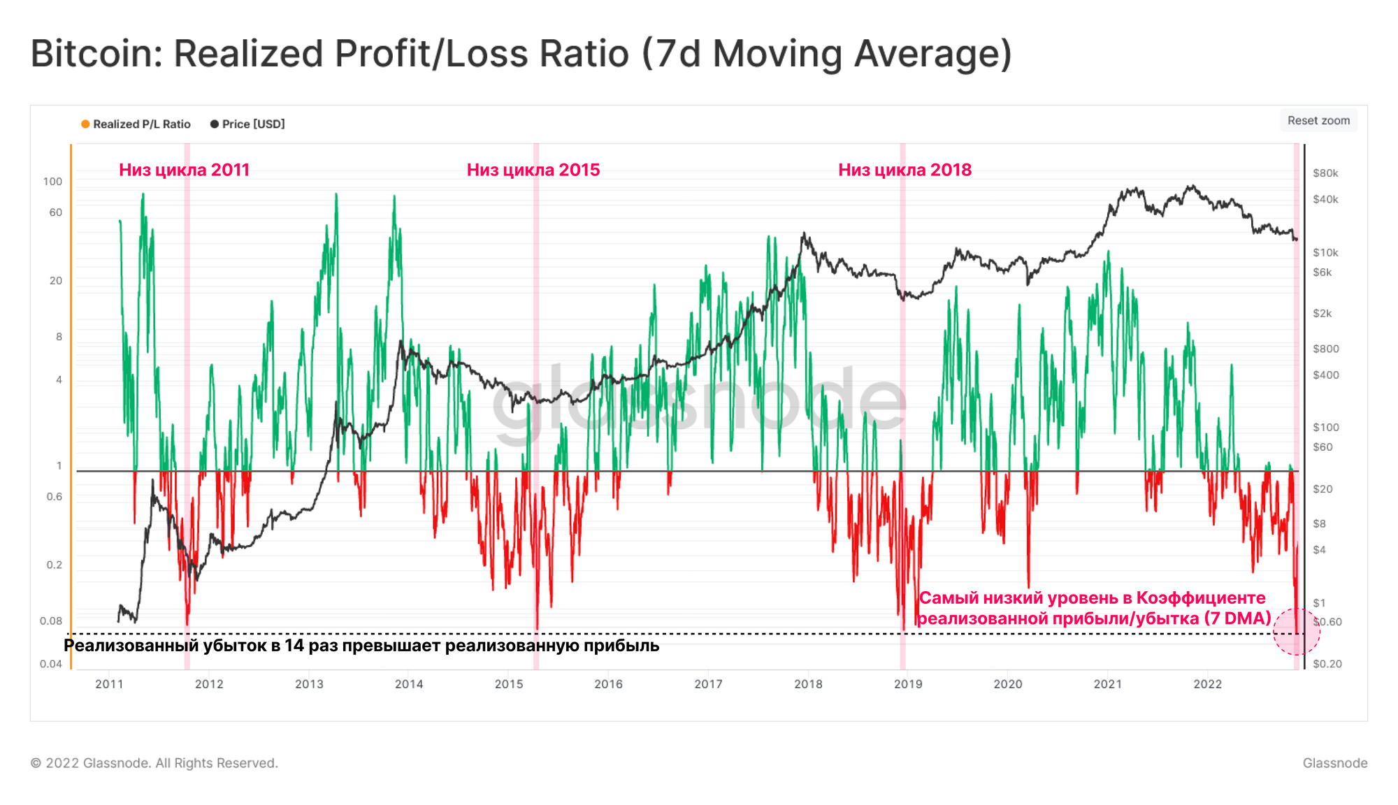Мы можем дополнить этот анализ, рассмотрев соотношение между реализованной прибылью и реализованными убытками. мы можем наблюдать, что соотношение между реализованной прибылью / убытками зафиксировало новый рекордно низкий показатель.