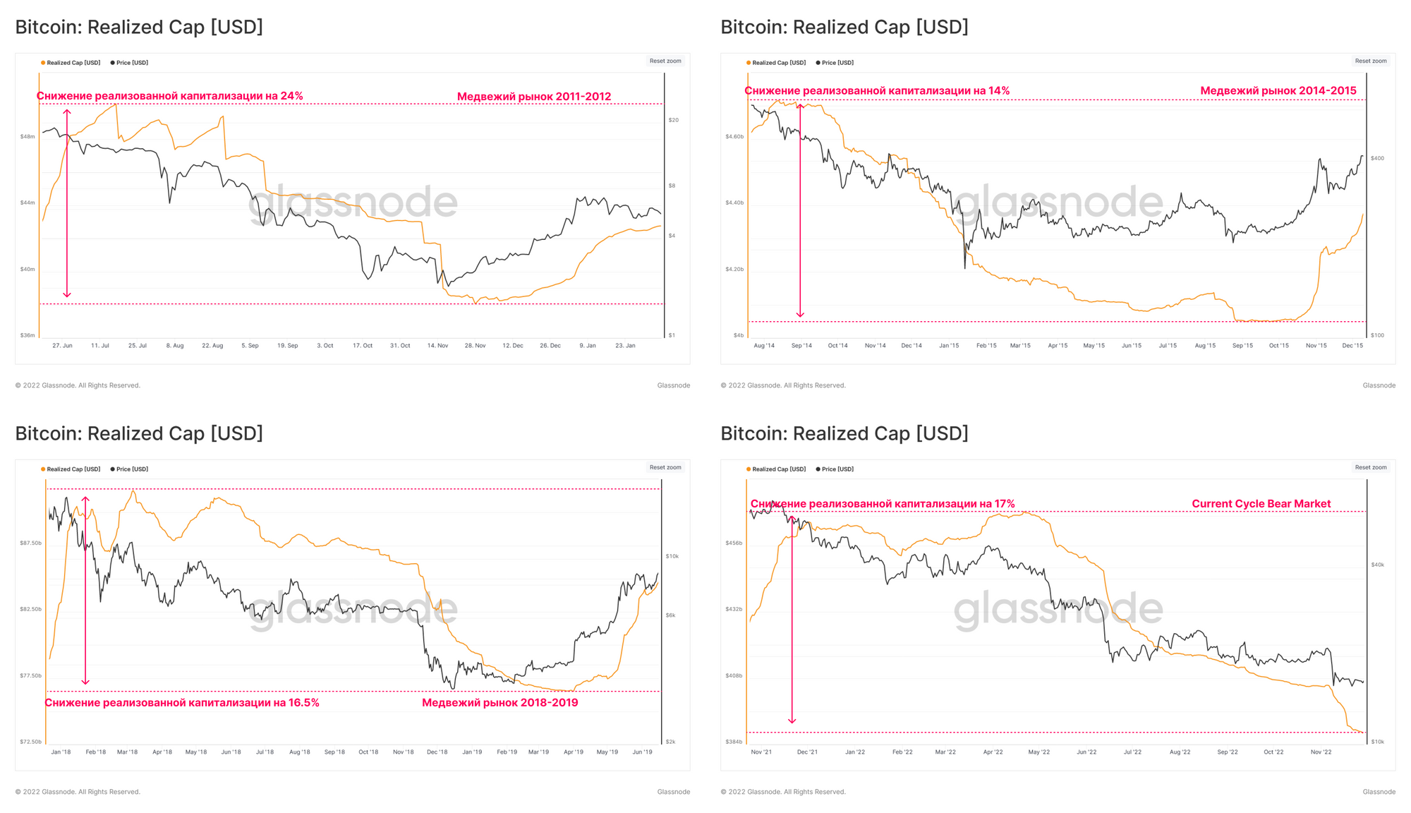 - В 2017-18 годах было зафиксировано снижение реализованной капитализации на 16,5%, что ближе всего к текущему циклу в 17,0%.