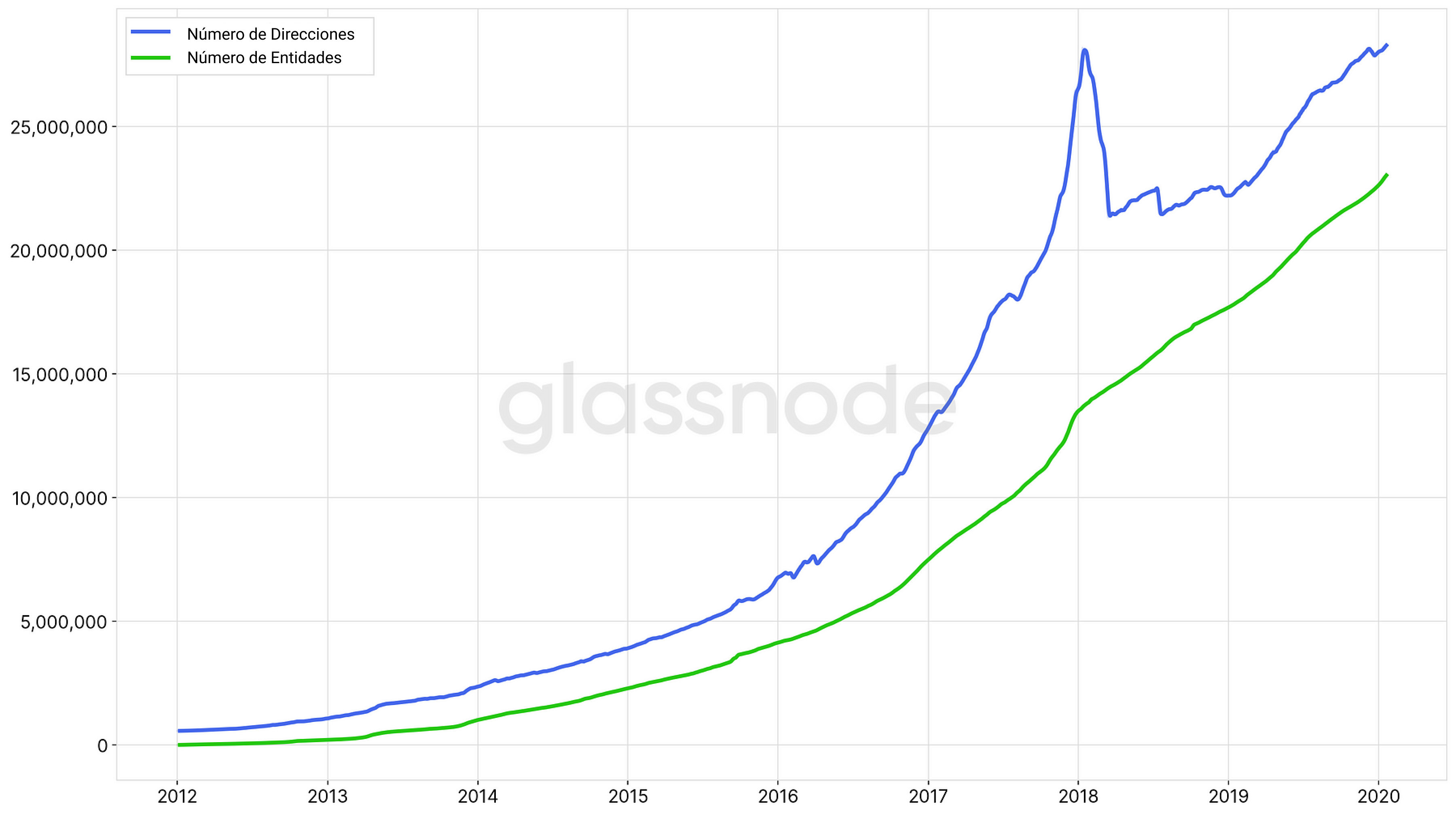 De acuerdo a nuestro análisis, en enero del 2020, la cantidad de entidades en posesión de Bitcoin rondaba los 23,1 millones.