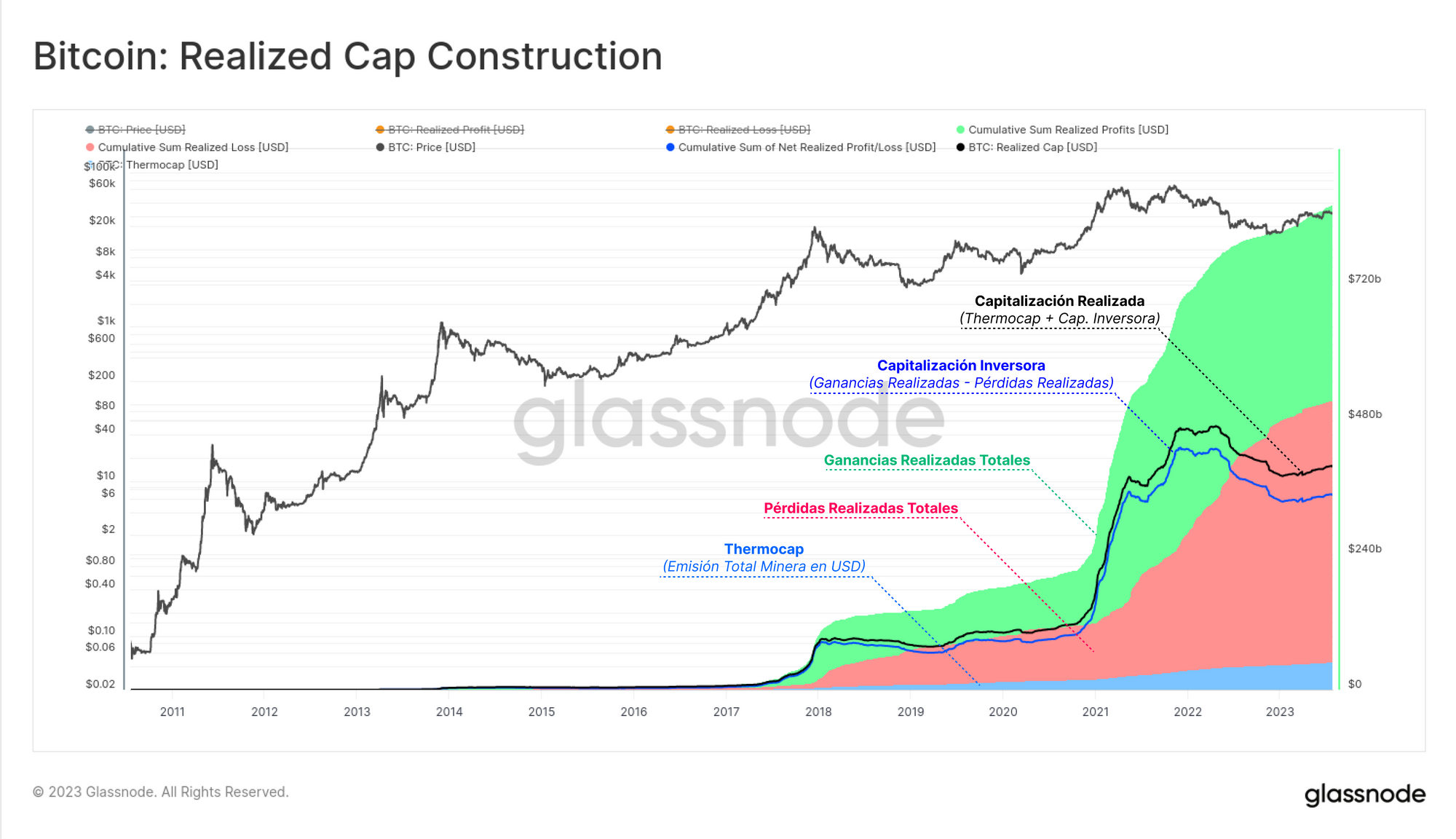 Entre las métricas que se derivan, o son componentes, de la Capitalización Realizada se incluyen entre otras las de ganancias y pérdidas Realizadas y No Realizadas. Estas herramientas son especialmente adecuadas para llevar a cabo excelentes análisis de mercado y desarrollar sólidas estrategias de trading, ya que describen los incentivos financieros (miedo y avaricia) que hay detrás de las decisiones que toman los diferentes inversores que participan en el mercado.