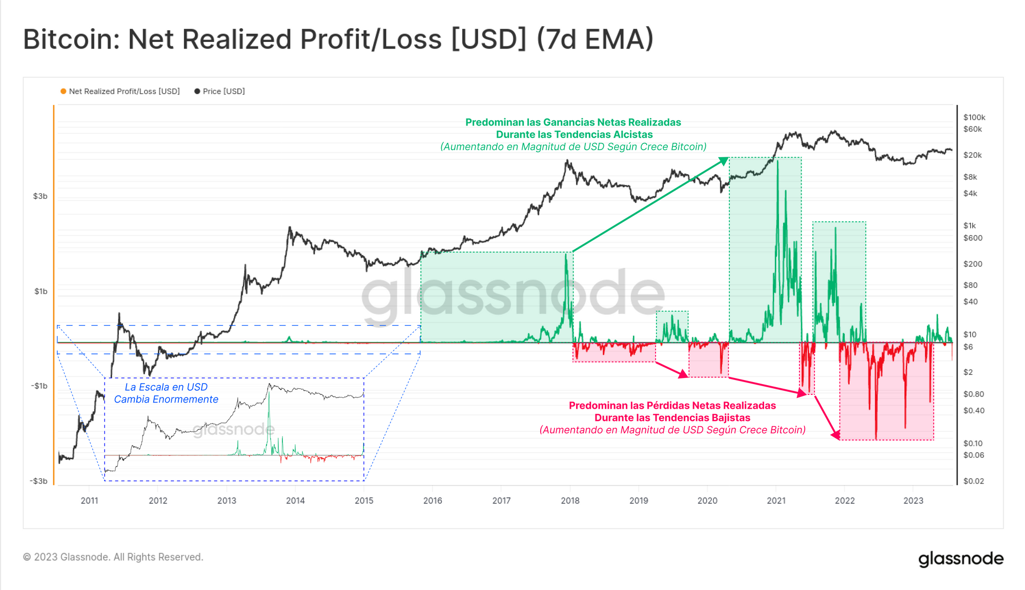 Al fin de cuentas, las ganancias y pérdidas son los motores principales que impulsan las decisiones de los inversores. Al evaluar el mercado desde la perspectiva de las ganancias y pérdidas realizadas, los analistas podemos ganar una perspectiva densa en información sobre el estado del sentimiento inversor y su posicionamiento al mismo tiempo, todo mientras se revalúan las monedas y cambian de manos.