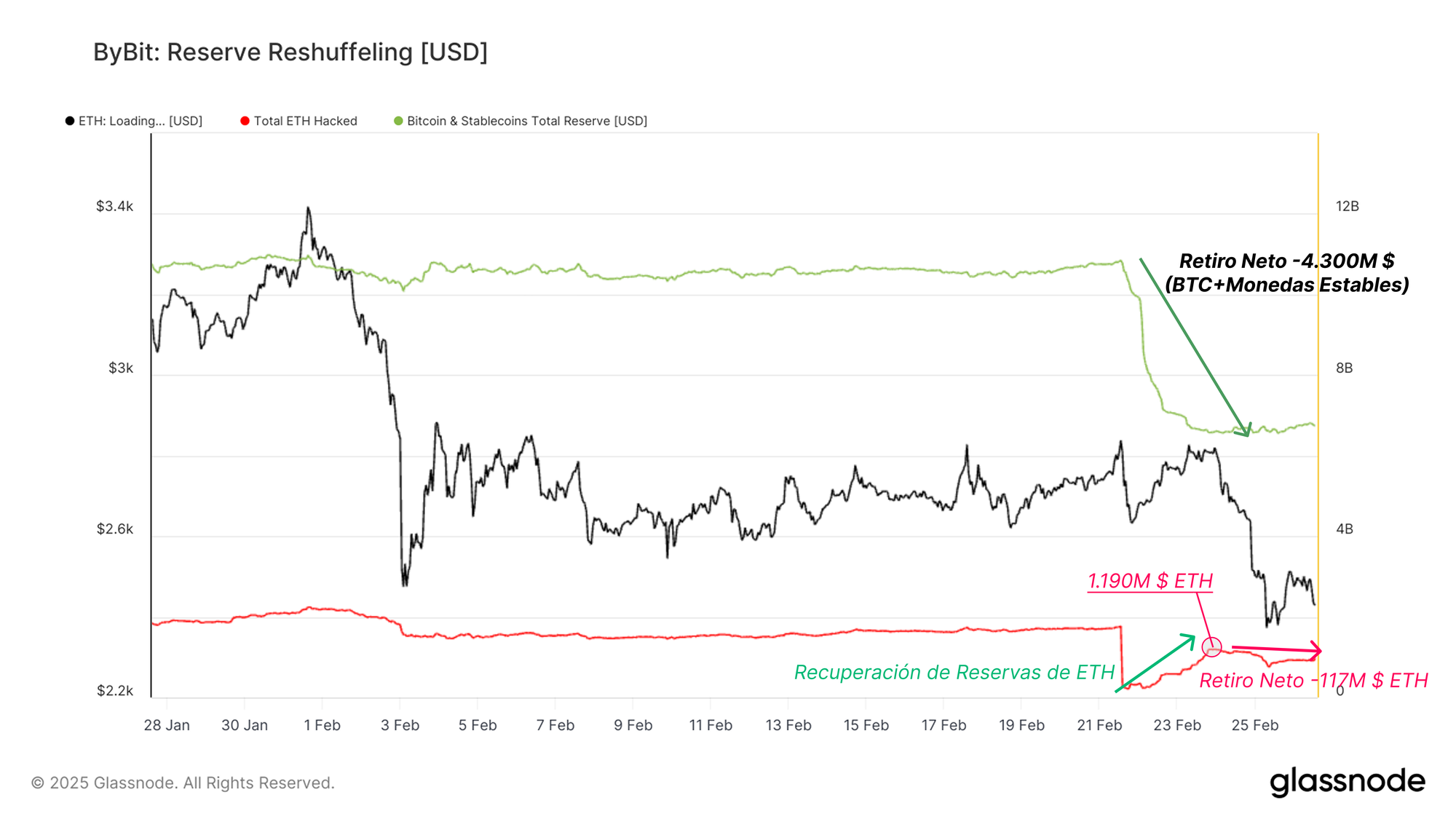 El análisis de los esfuerzos de Bybit por reponer sus reservas de Ethereum junto con las significativas salidas de Bitcoin y Tether nos brinda una intresante perspectiva sobre la respuesta de la plataforma y, por extensión, de las entidades de mayor envergadura ante uno de los hackeos más devastadores en la historia del mercado cripto.
