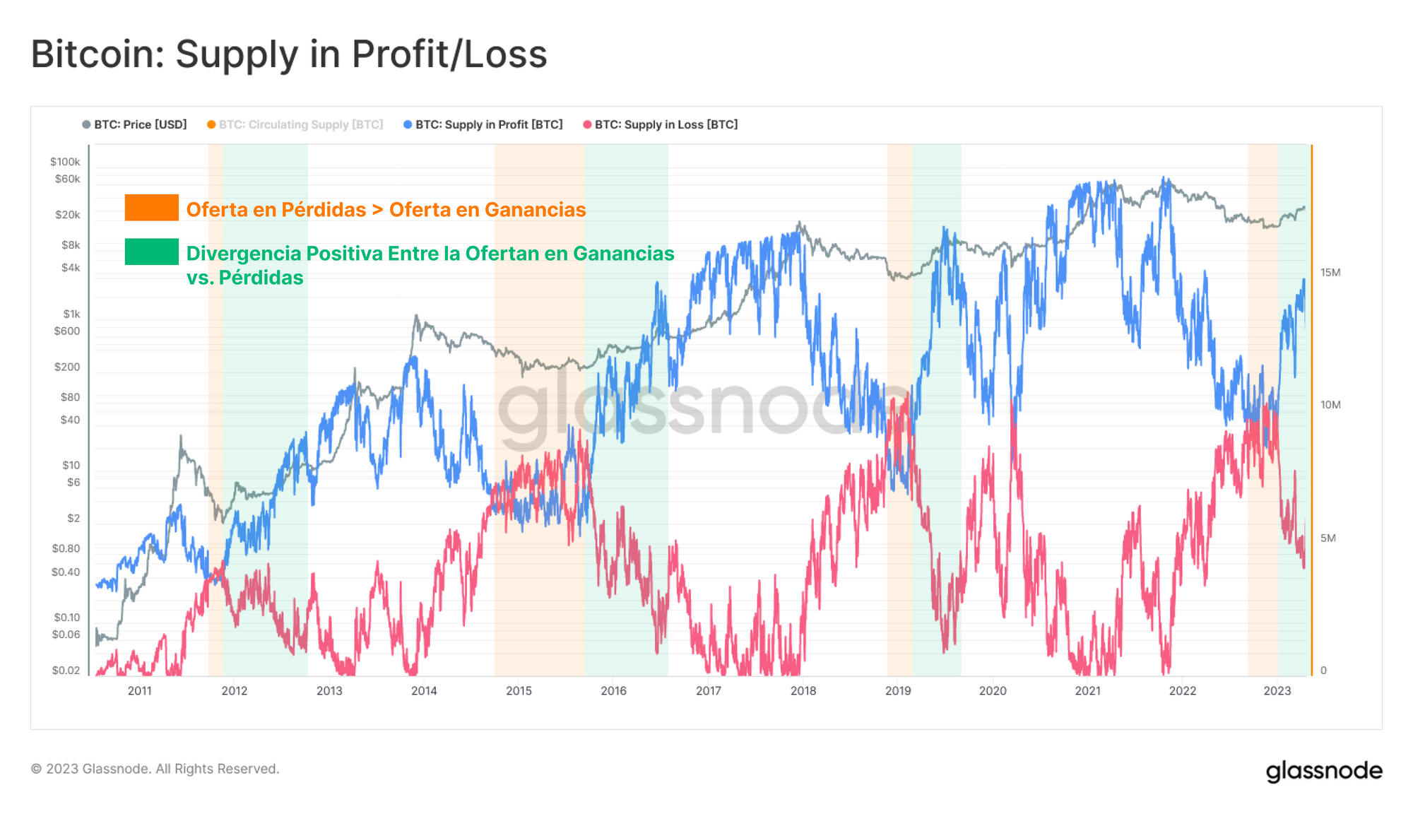 Después del vigoroso arranque del 2023, ahora BTC se choca de frente con su primera resistencia reconocible, haciendo que retrocedamos tras el repunte hasta los 30.000$. Es algo que sucede a la par que vemos a una enorme cantidad del mercado estar de vuelta en verde y sobre su precio de adquisición, lo que sin duda da lugar a un entorno más rentable y favorable.