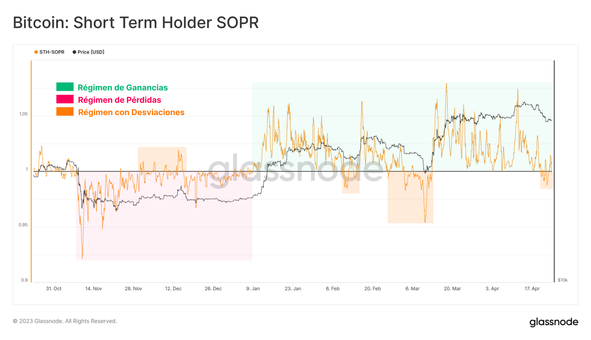Se aprecia una estructura similar en la variante de los Inversores a Corto Plazo de este RGPG, debido a que las monedas más recientemente adquiridas tienen ganancias no realizadas una vez más. La corrección del pasado mes de marzo llegó a bajar del nivel psicológico de los 20.000$ justo antes de darse la vuelta con mucha fuerza.