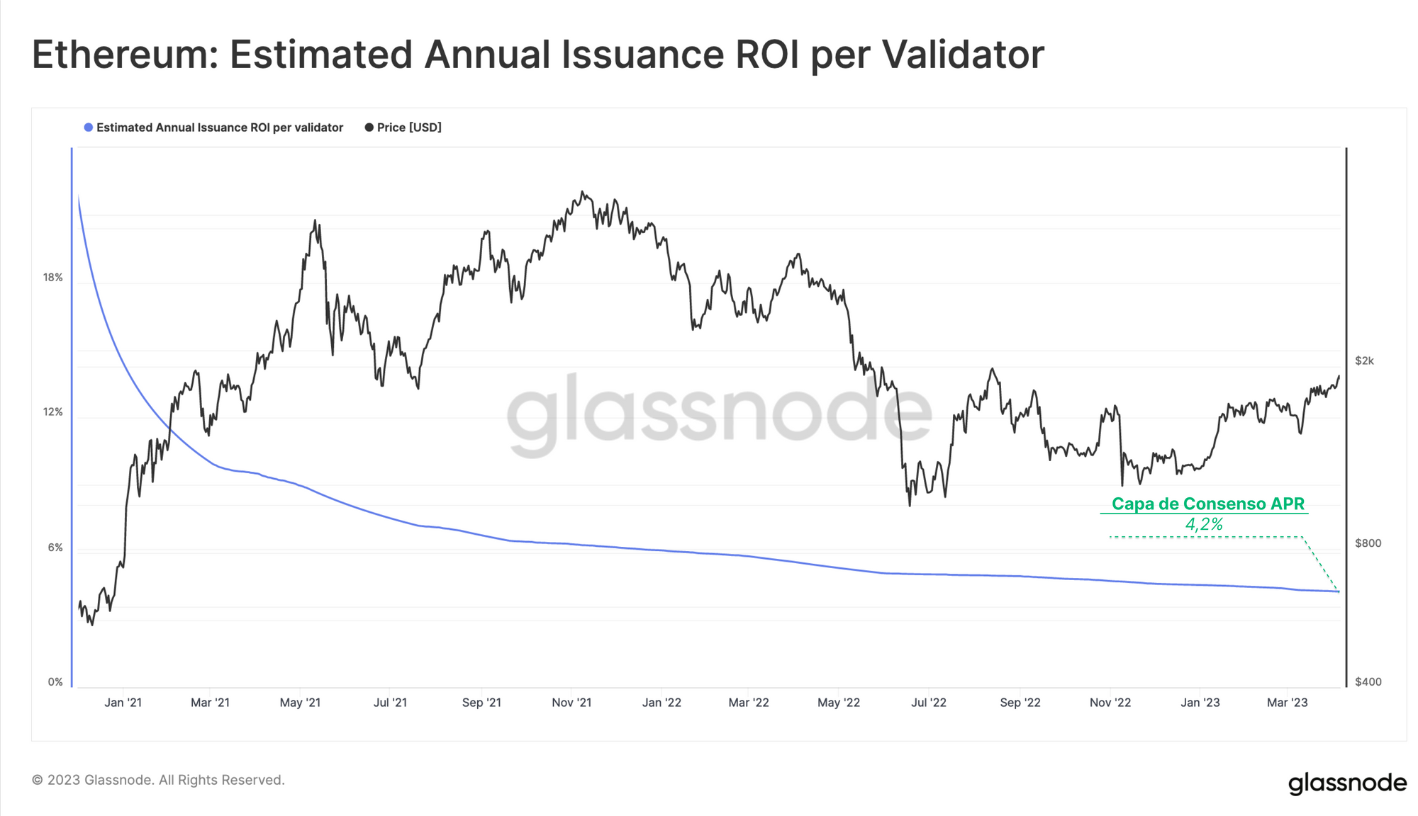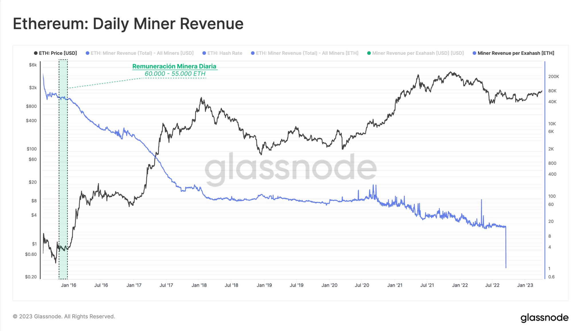 Para ponerlo sobre contexto, la cantidad de retiros debería provocar dinámicas similares a las que vimos durante los primeros días de la Prueba de Trabajo, en los que la remuneración minera oscilaba en torno a ese mismo rango (a pesar de que el precio de ETH andaba por debajo de 1$).