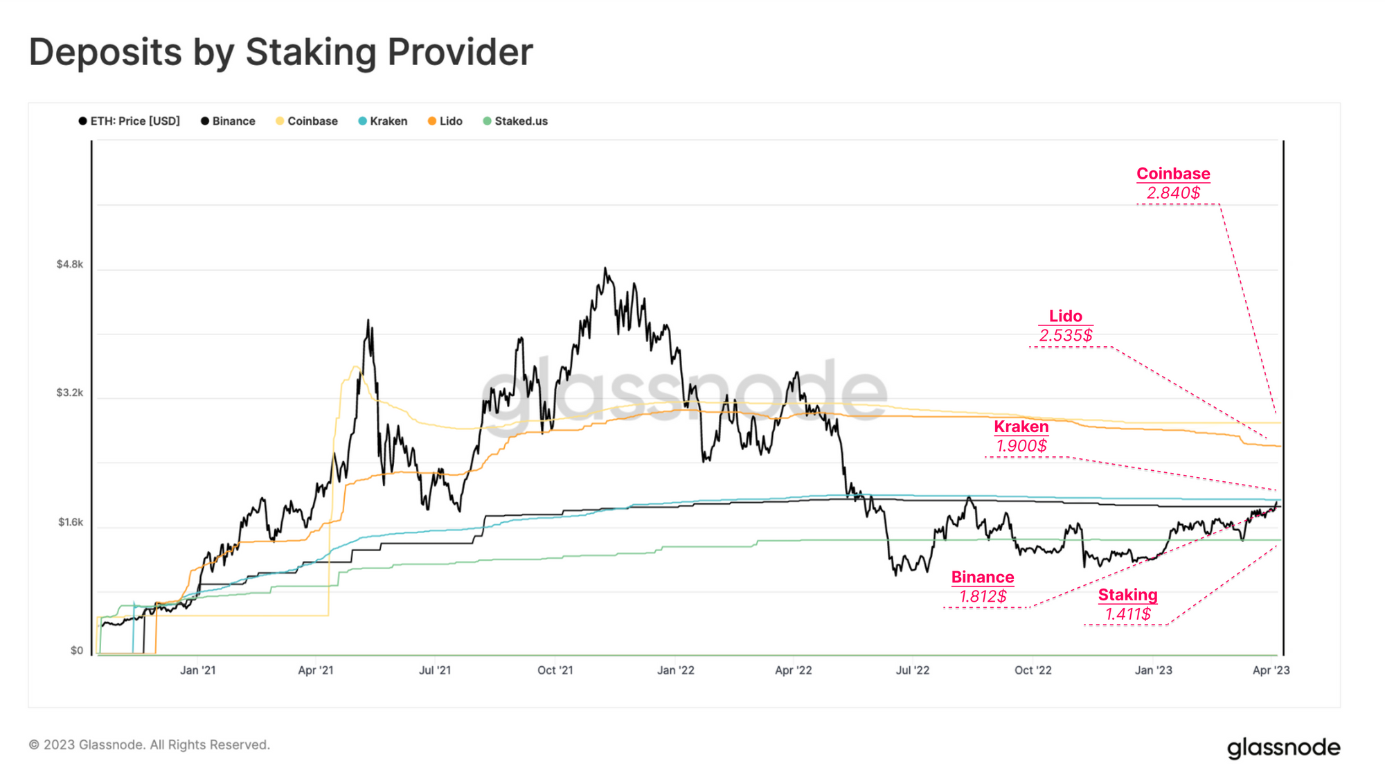 - Durante los primeros seis meses después de la aparición de la Cadena Beacon, Kraken y Binance fueron los depositantes principales. Sin embargo, Coinbase y Lido les adelantaron después.