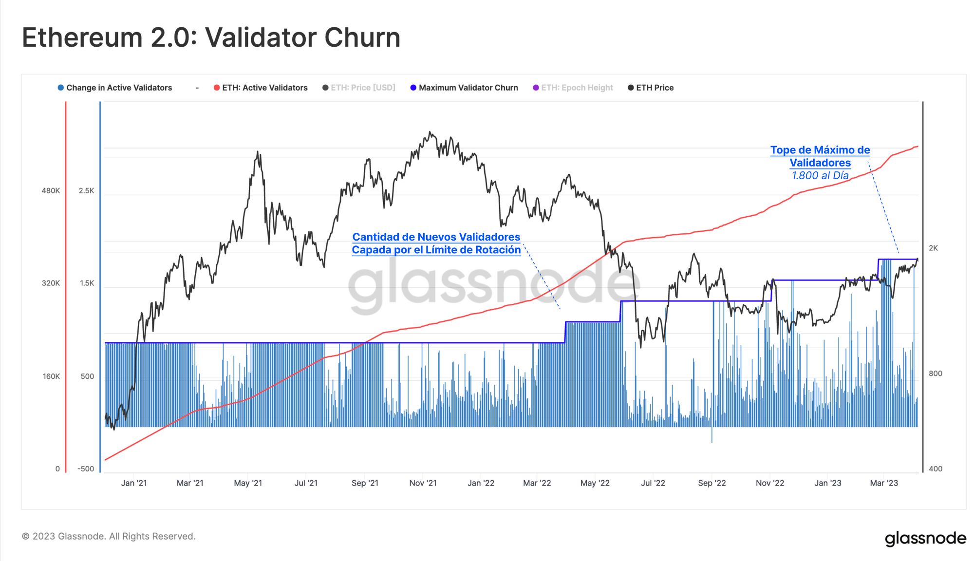 Esta cantidad diaria la determina la tasa de rotación, que establece tanto la cantidad de validadores entrantes como la de validadores en existencia. El propio límite de cancelación está correlacionado con el número de validadores activos en la reserva de staking.