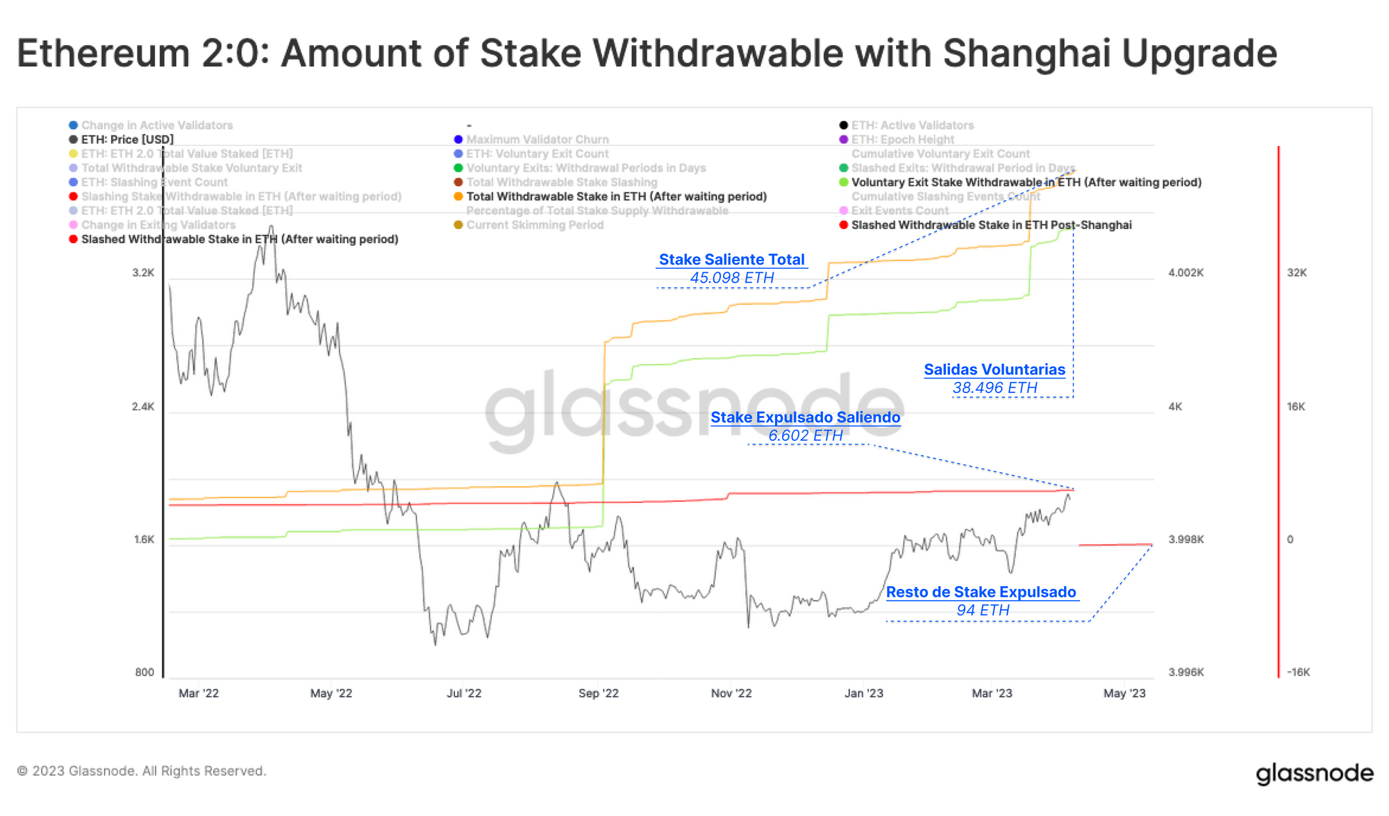 Lo que nos deja dentro de un probable rango entre los 76.000 ETH (141M $) y hasta un máximo de 162.000 ETH (300M $) que nos permite medir la posible presión vendedora que pueda llegar de mano de retiros parciales tras la actualización Shanghai.