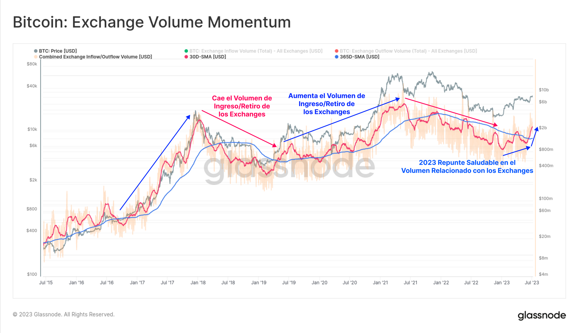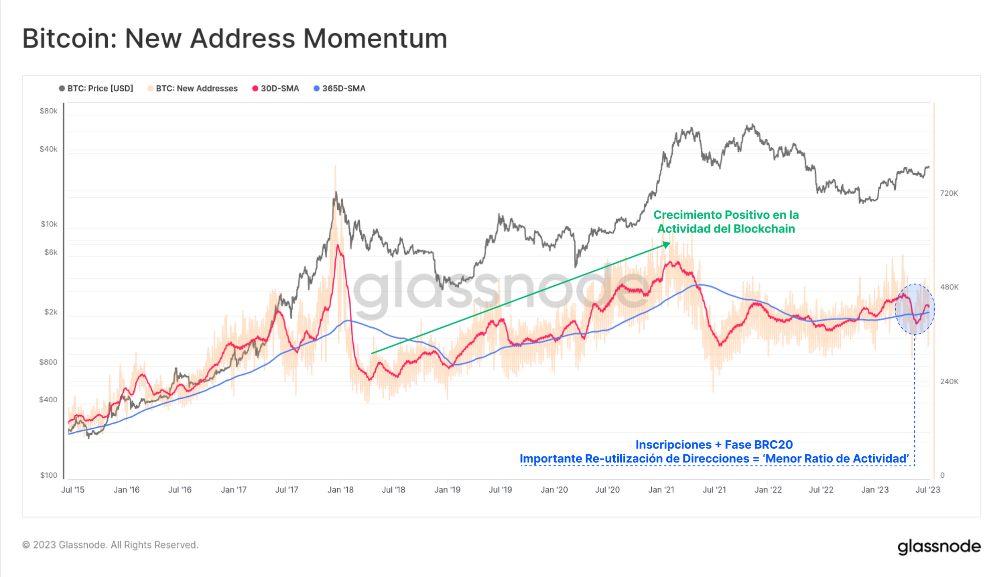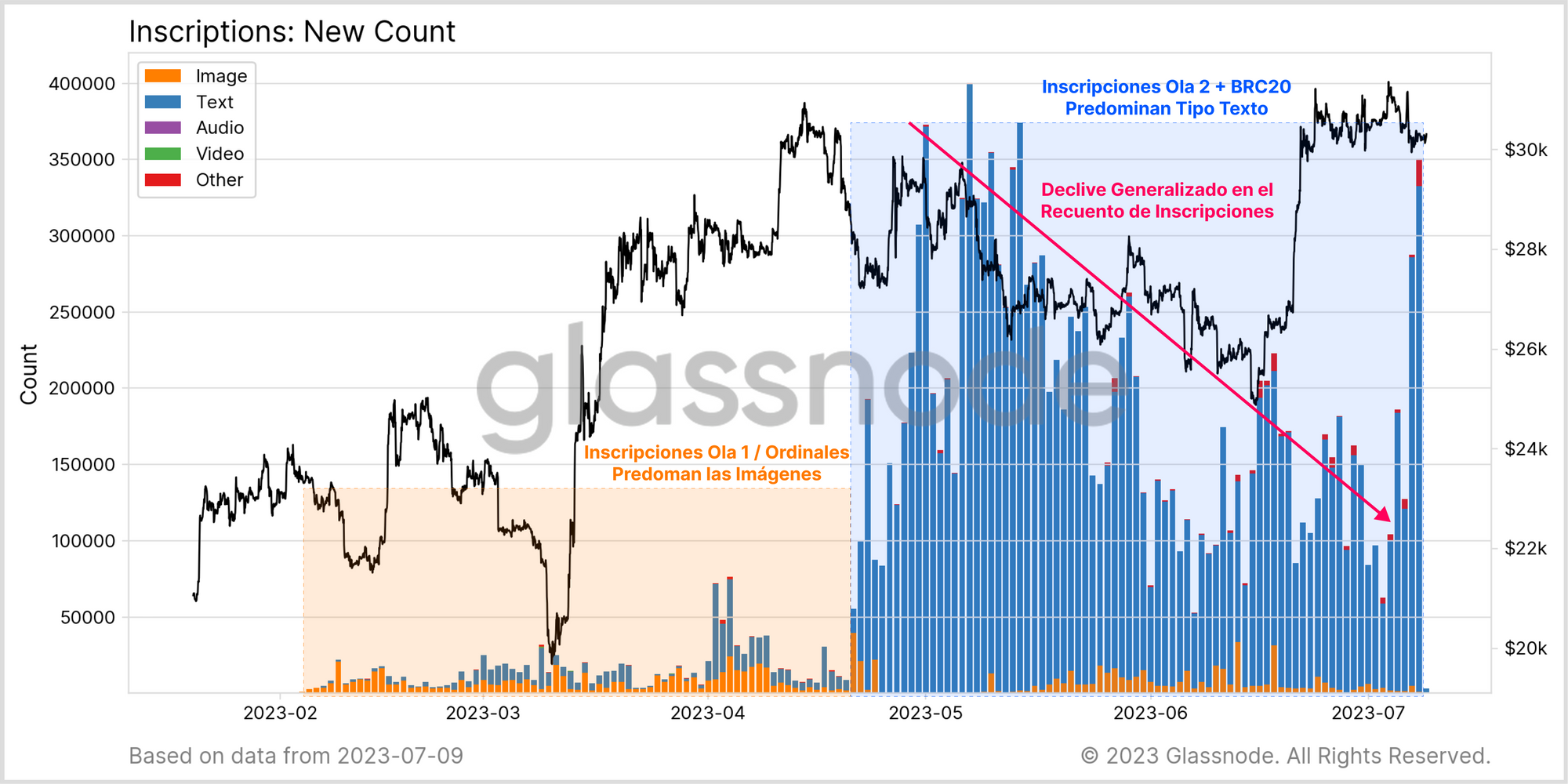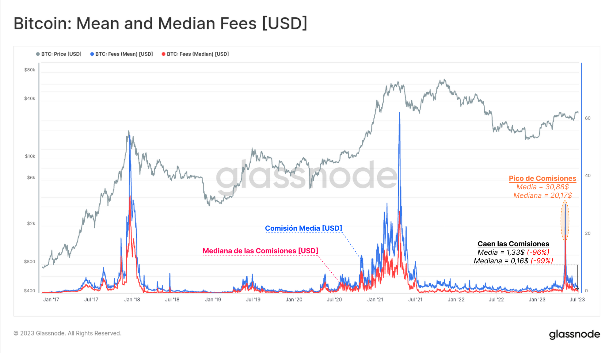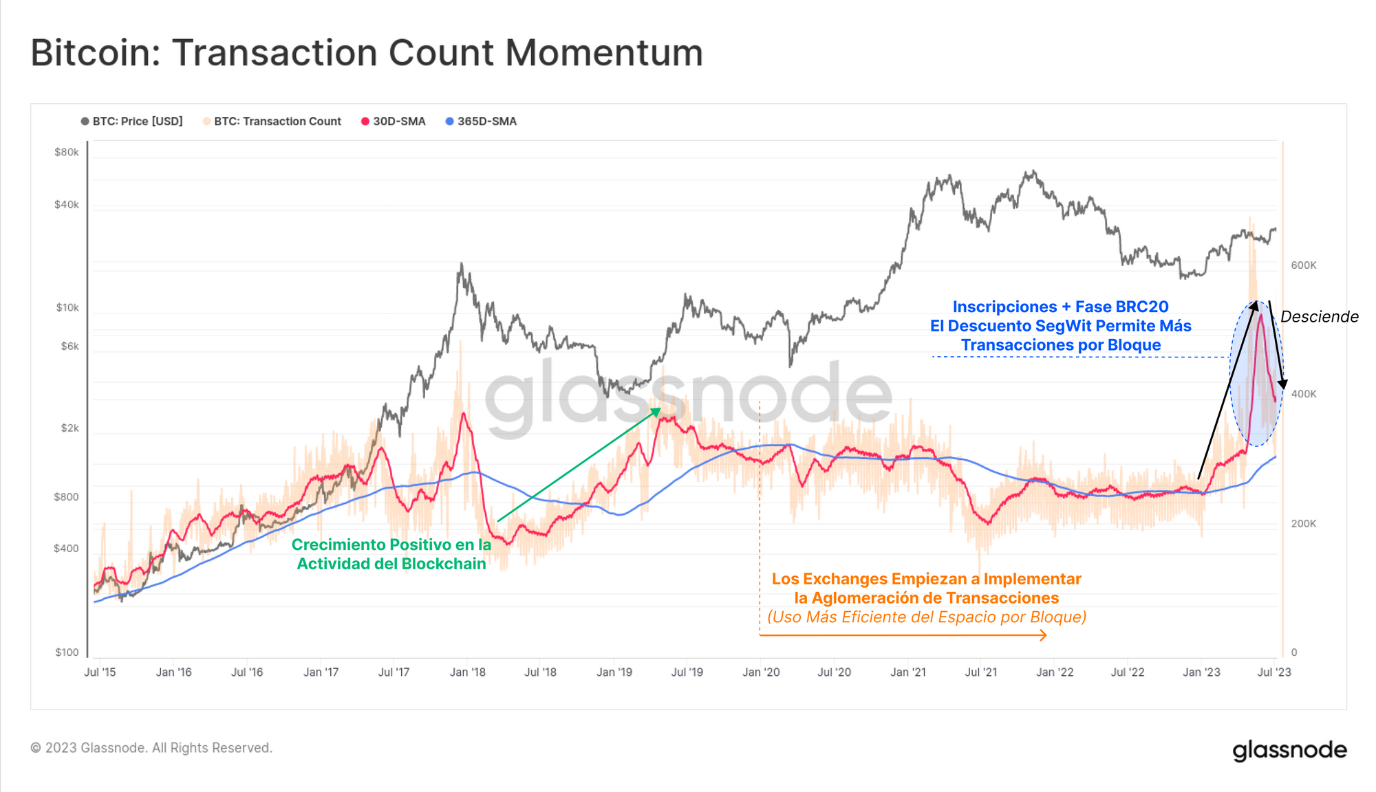 El precio de Bitcoin ha alcanzado el ‘punto medio’ del ciclo 2021-22 en los 30.000$, varias métricas rondan valores del ‘periodo de reacumulación’ que atravesamos en ciclos anteriores. Hay menos inscripciones, aunque son las transacciones monetarias las que cobran fuerza de nuevo.