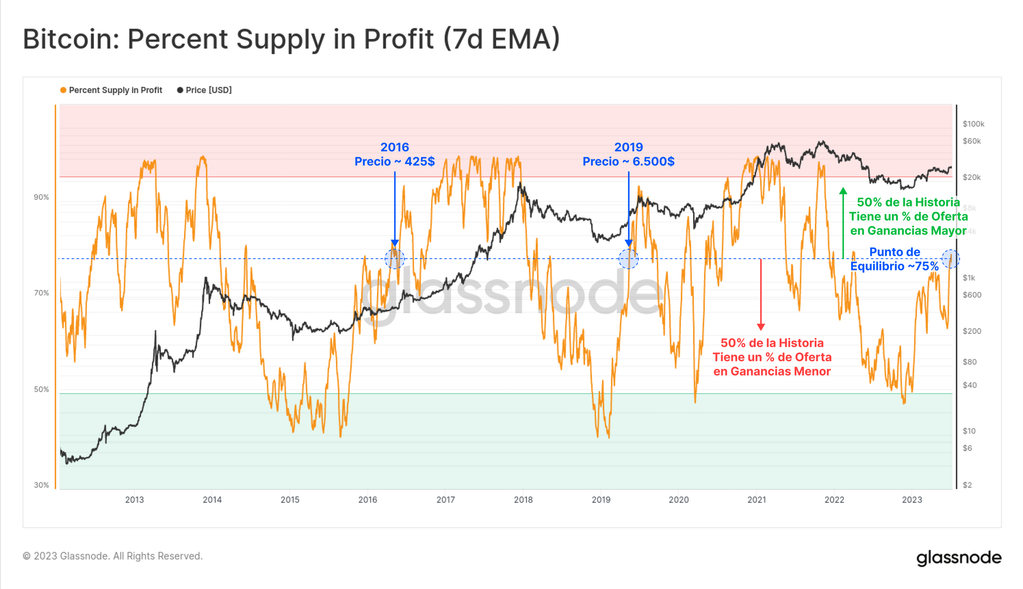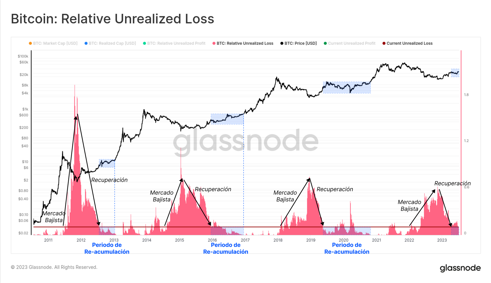 - El balance de oferta en ganancias vs. en pérdidas está en equilibrio, como sucede en los ‘periodos de reacumulación’ que duraron meses en los anteriores ciclos.