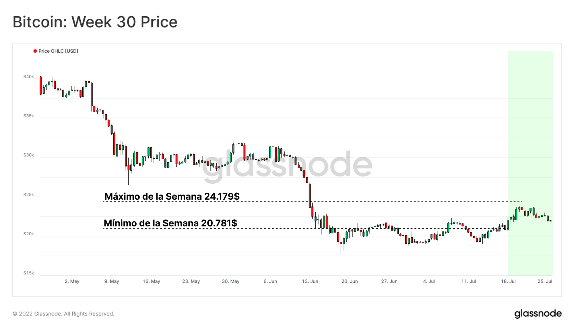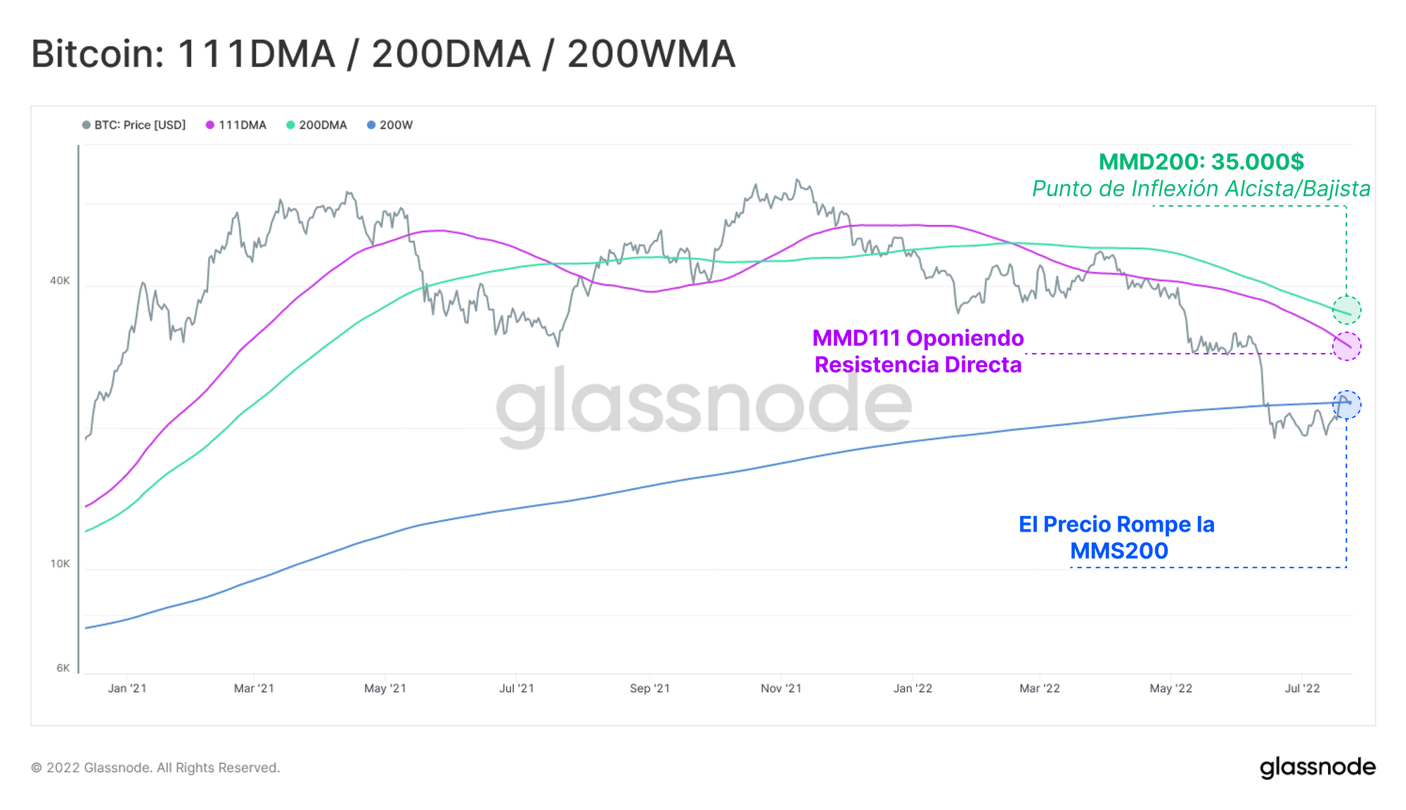 - La Media Móvil Semanal de 200 periodos se ubica actualmente en los 22.000$ e históricamente ha servido como indicador fiable durante la formación de suelos.