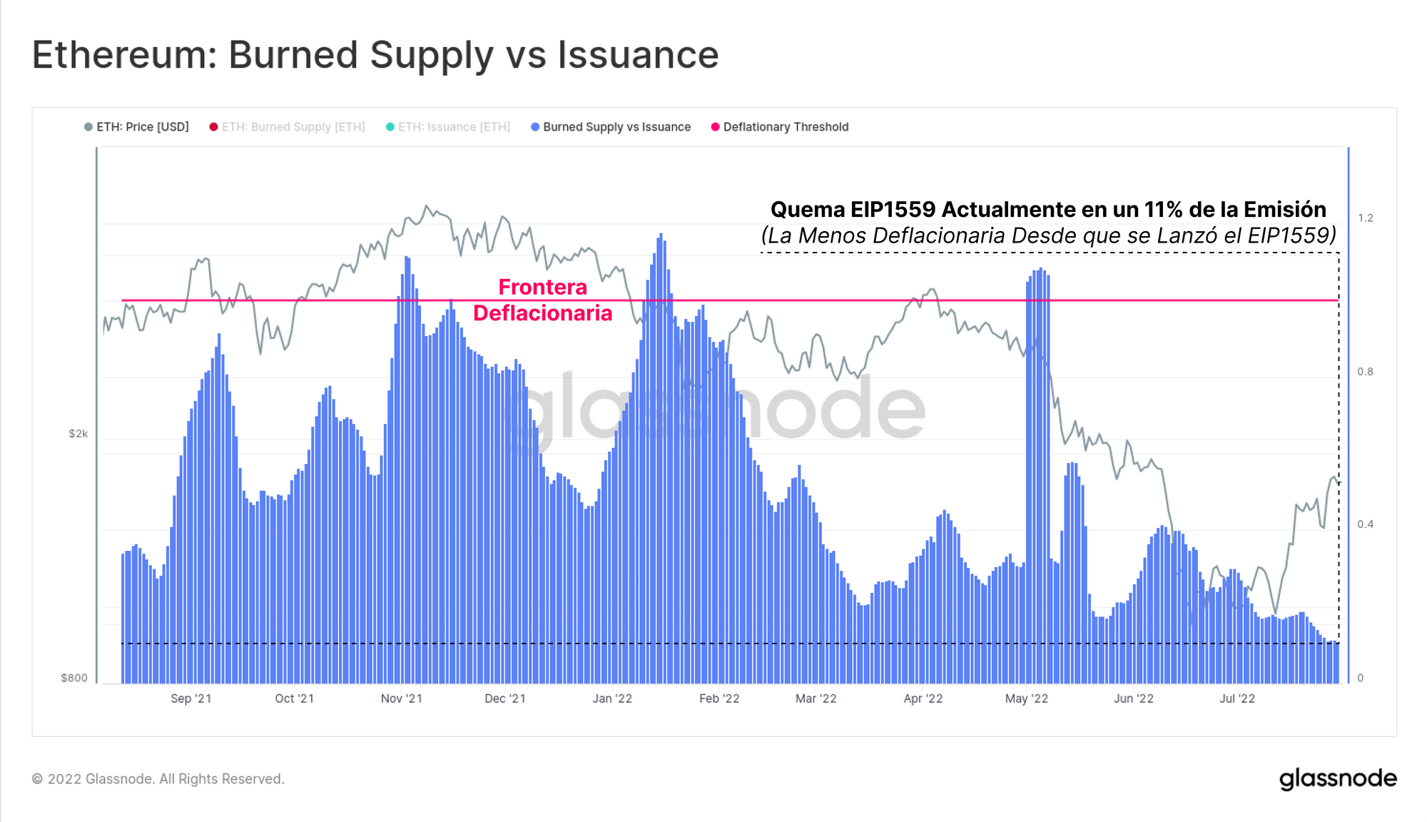En términos prácticos esto quiere decir que se está inyectando un volumen de ETH relativamente grande comparado con el periodo anterior al EIP1559.