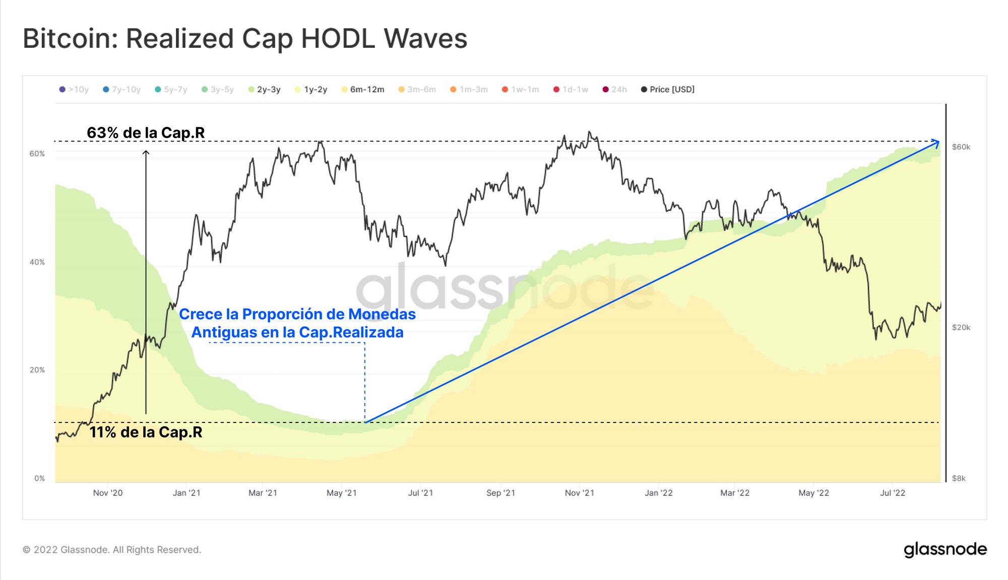 En esta entrega, vamos a conocer en profundidad el tortuoso camino que emprenden las monedas para alcanzar la madurez. Consiste en el proceso de maduración que atraviesa BTC dentro de las carteras de sus inversores. Generalmente, cuando un inversor mantiene más tiempo la posesión de una moneda, mayores son las probabilidades de que tenga una elevada convicción, y de que se trate de un propietario más insensible al coste de esa moneda. Tras una capitulación bastante profunda, estamos tratando de distinguir a los que han vendido, de los que han hecho su aparición en escena en los mínimos.