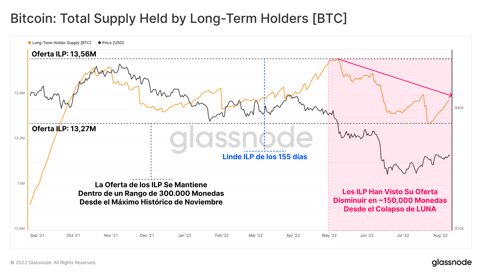 - Desde el desplome de Luna en mayo de este 2022, los ILP han sufrido un descenso mantenido de oferta que ya suma los -150.000 BTC.