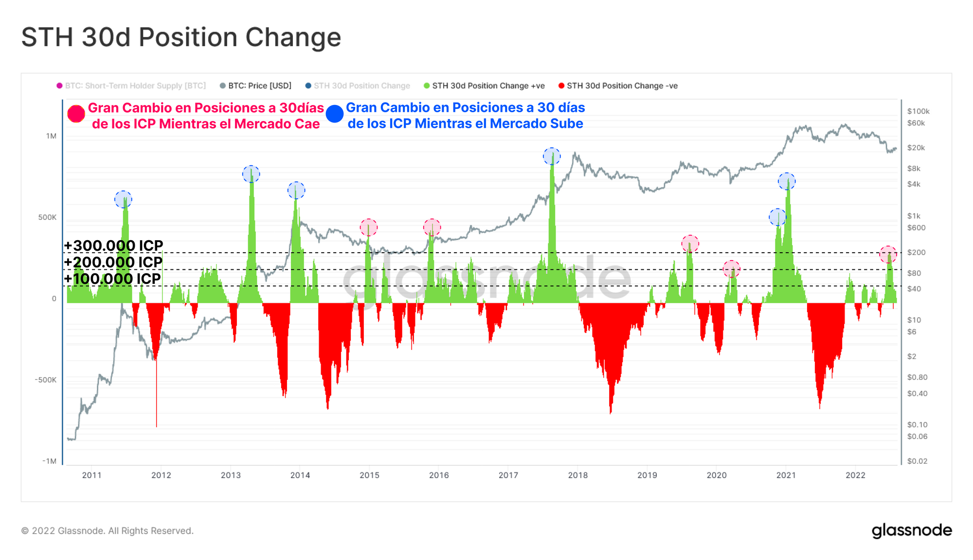 Por definición, estas monedas han sido transferidas al grupo de los Inversores a Corto Plazo. Desde el desplome de Luna del 8 de marzo del 2022, la oferta de los ICP ha crecido en +330.000 BTC.