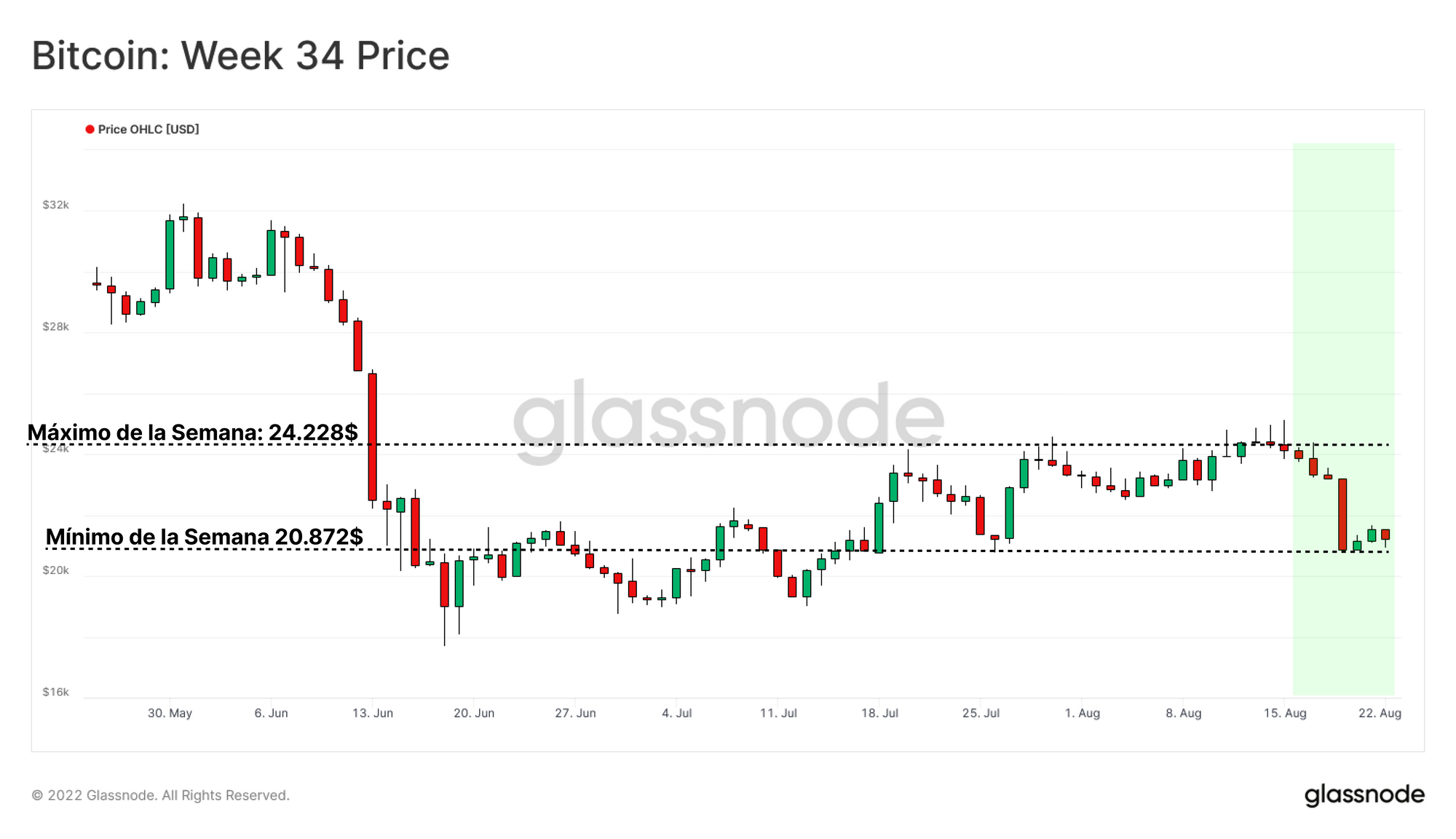 Por tanto, de las anteriores observaciones podemos deducir desde la perspectiva del blockchain, que este último repunte en los precios tenía detrás muy poca sustancia y se confirma de este modo la fragilidad del mismo de la que hacíamos hincapié en la Semana 31.
