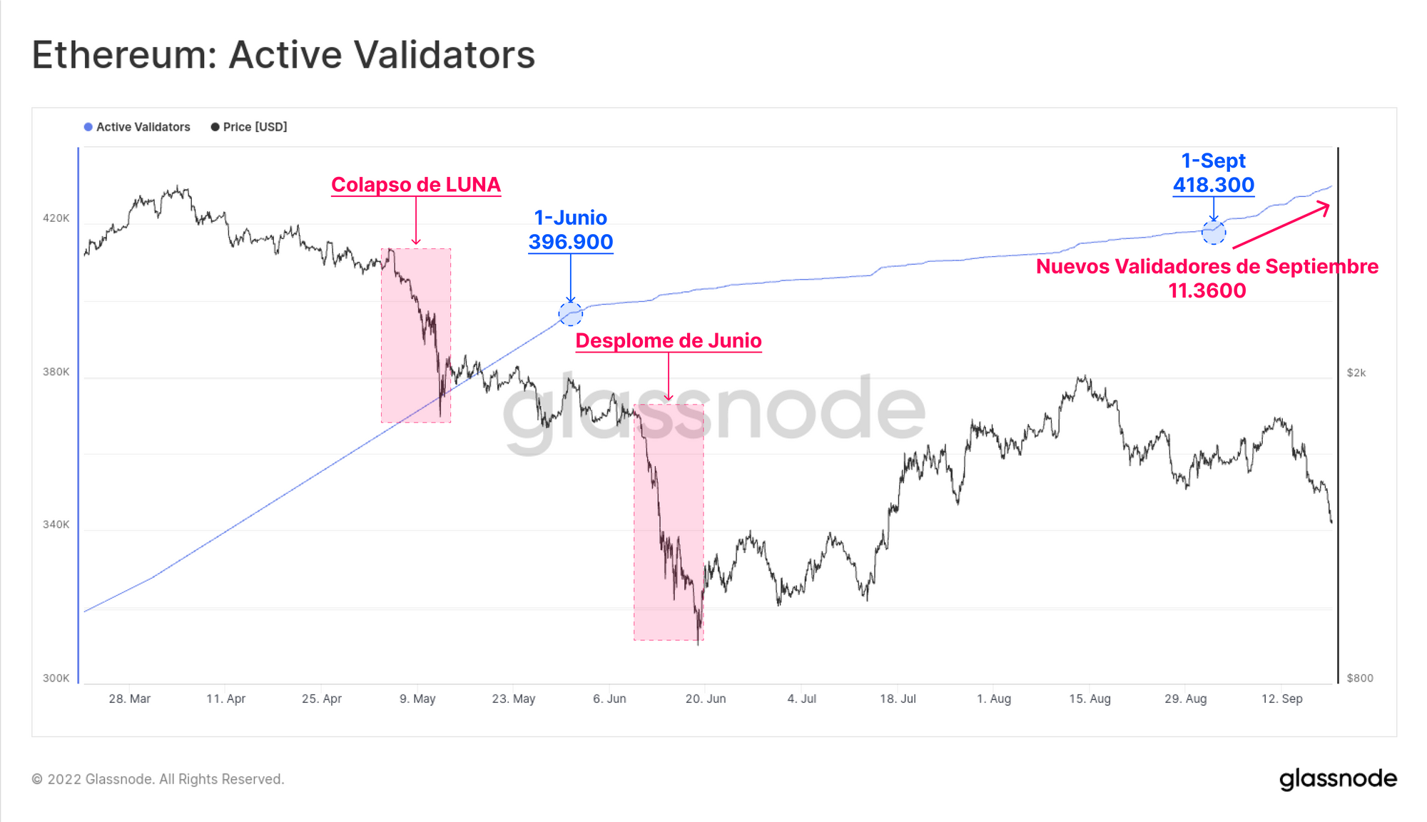 Se hace visible también el estallido de nuevos validadores en septiembre, aunque sigue siendo bajo en relación a los periodos más activos del 2021.