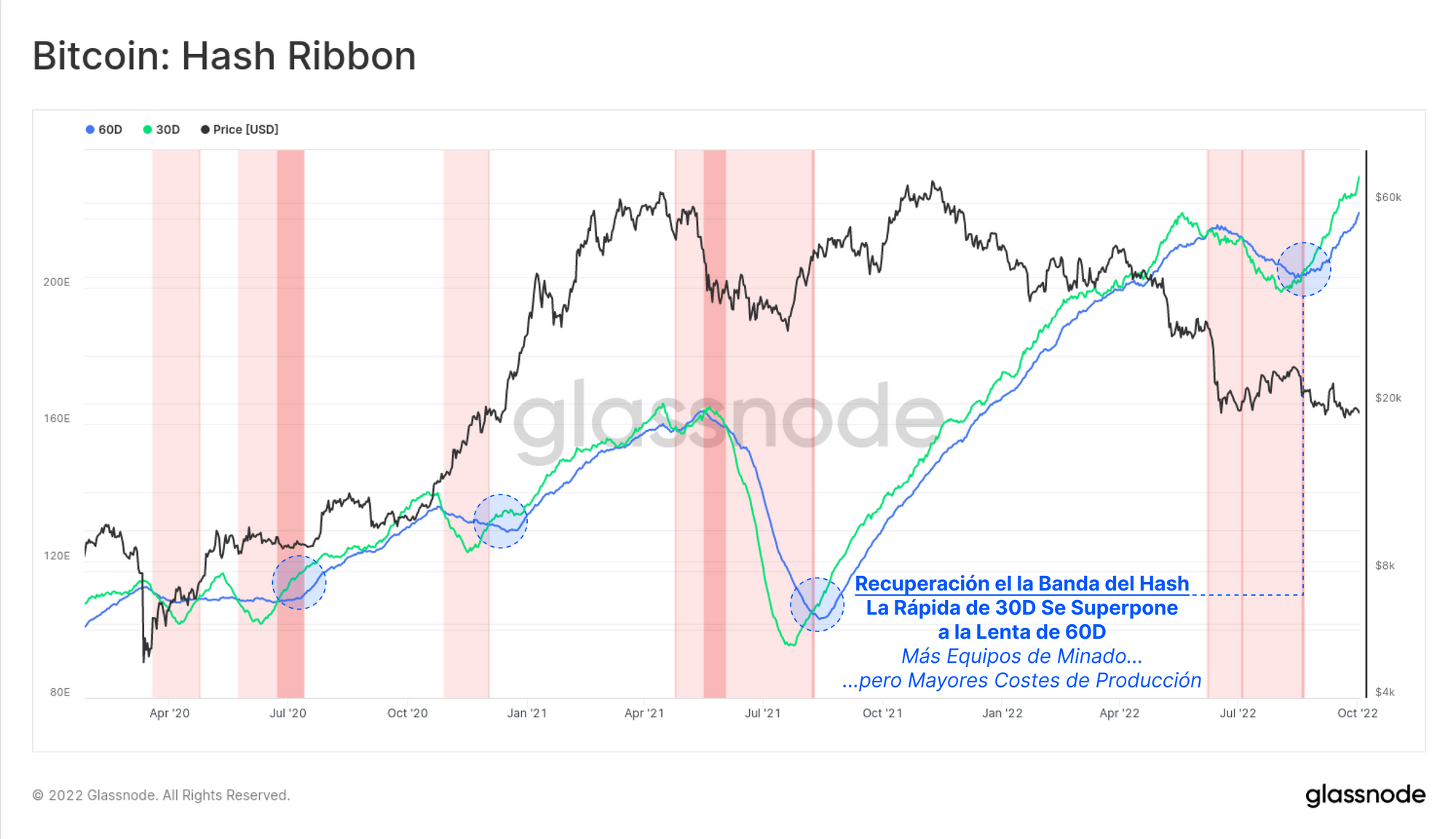 A pesar de las fuertes caídas más recientes, y todo el ajetreo del macro entorno, increíblemente el hashrate de Bitcoin ha alcanzado esta semana un nuevo máximo histórico. La última vez que hablamos del estrés que se ha estado desarrollando dentro del sector de la Minería de Bitcoin fue allá por el mes de junio (ver la Semana 23 y la Semana 25). Esta semana, vamos a retomarlo con especial hincapié sobre la producción de Bitcoin, que parece estarse recuperando tremendamente bien, y eso es una señal que históricamente ha sido muy positiva para los meses posteriores.