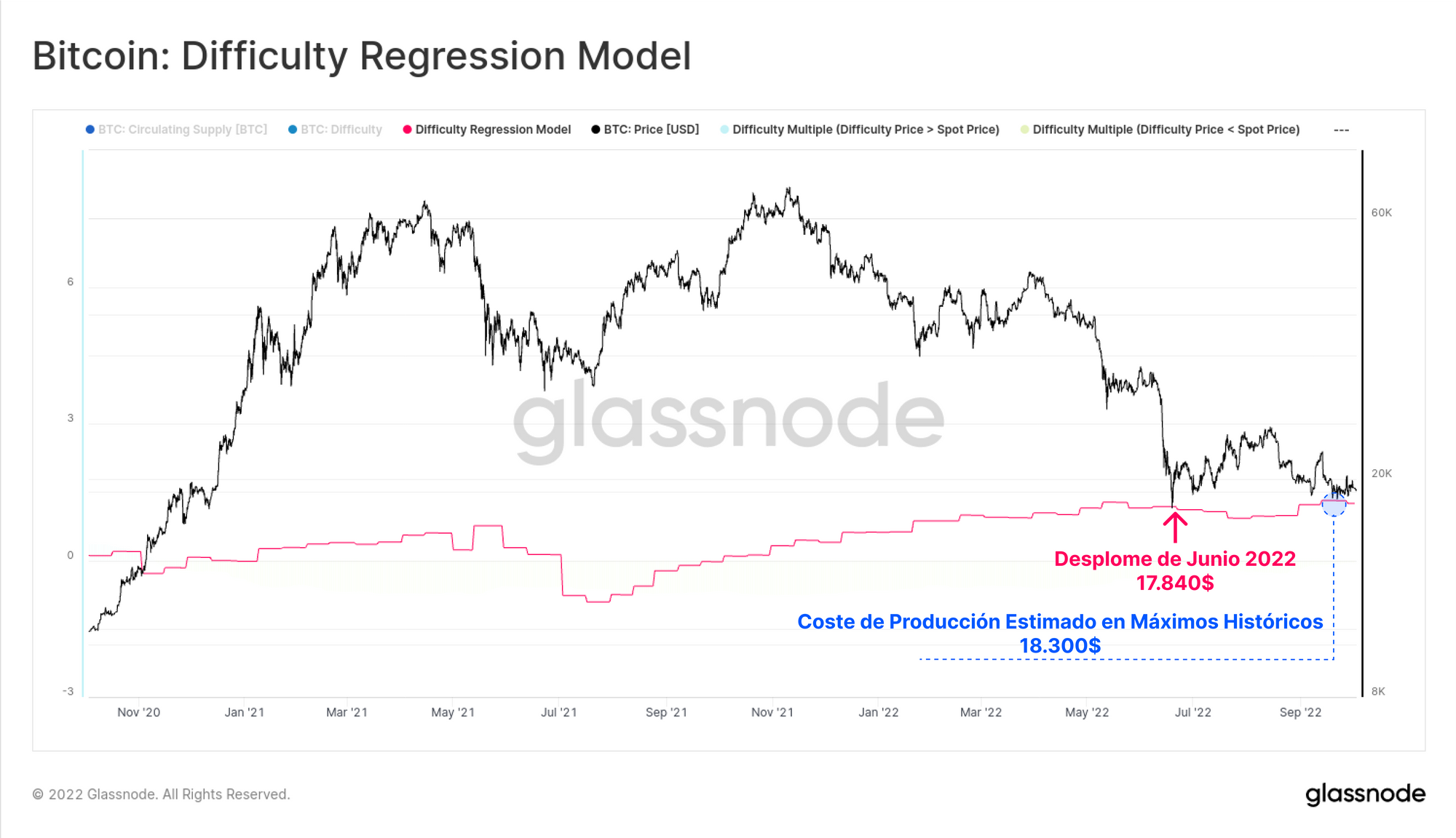 Muy parecido al Modelo de Regresión de la Dificultad, este rango de precios entre los 17.000$ y los 18.000$ coincide en el mismo punto que causó ese estrés minero en junio, alineándose con multitud de estimaciones sobre sus costes de producción.