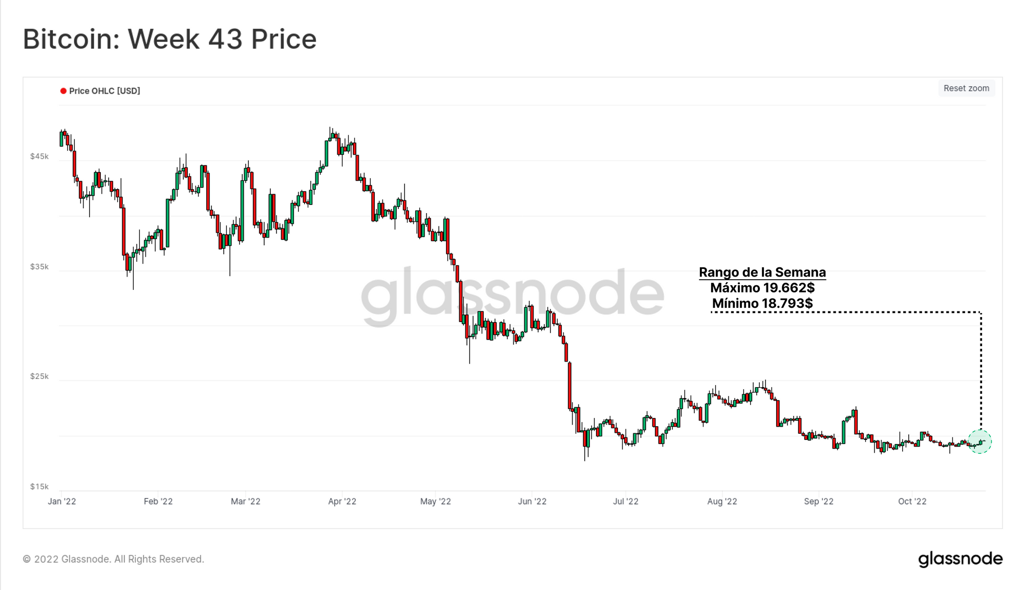 La volatilidad presente en el mercado de Bitcoin empieza a parecerse a la de las monedas estables, oscilando en un rango de apenas 869$. Tan solo un 4,6% separa al máximo del mínimo semanal de 19.662$ y 18.793$ respectivamente.