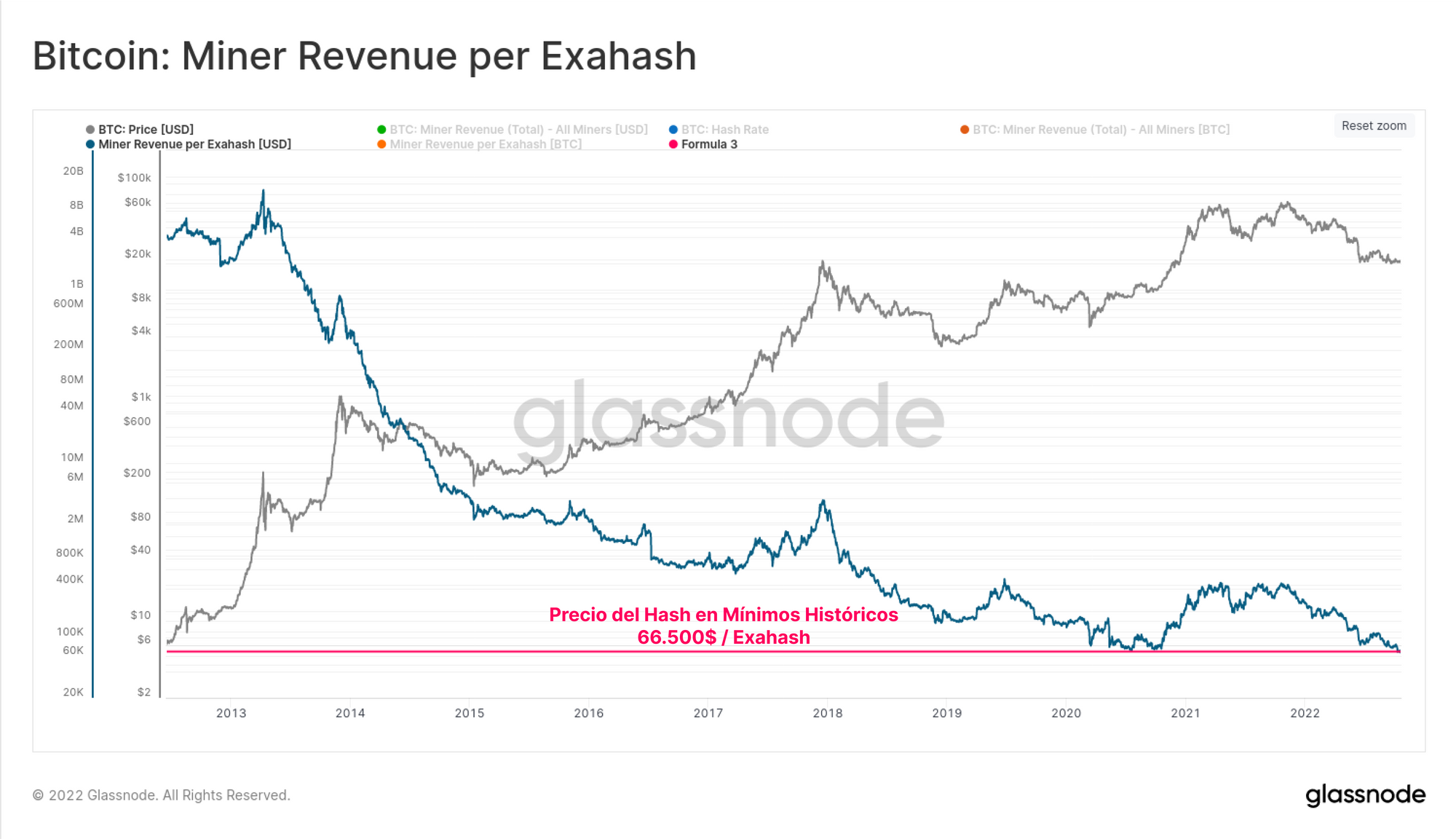 Ciertamente, el Precio del Hash minero ha descendido hacia nuevos mínimos históricos esta semana, haciendo que los mineros sólo produzcan unos 66.500$/día por Exahash que aportan a la red. Dado que el Precio del Hash ya cae por debajo de los mínimos que nos dejó el halving del 2020, incluso aunque el precio de mercado esté a más o menos el doble, es indiscutible lo extremo que está siendo para la industria el reciente aumento en la competitividad del hashrate.