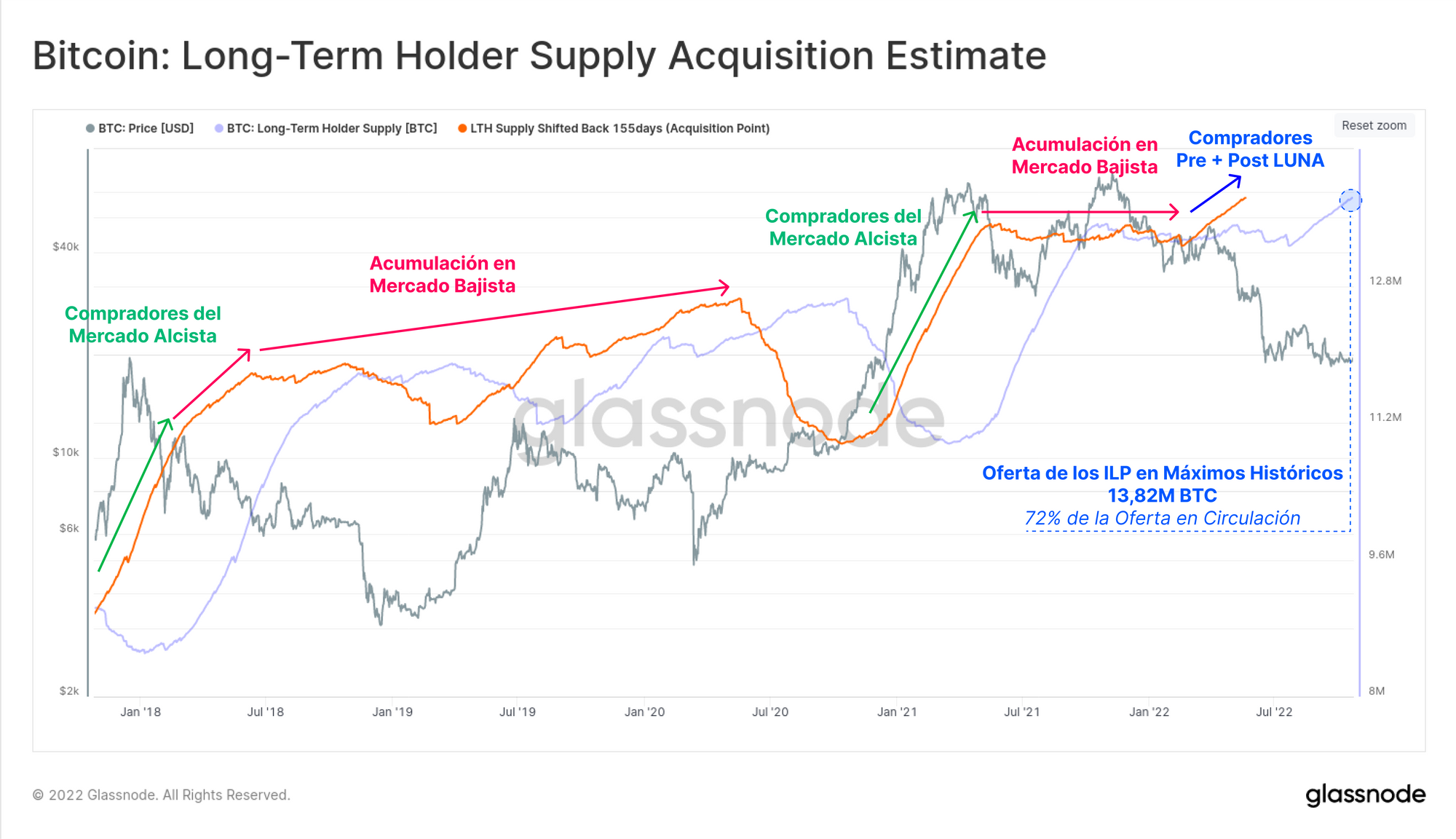Al inspeccionar la última 🟠 curva, encontramos un patrón muy similar al del mercado bajista del 2018 respecto al comportamiento de adquisición de los ILP. Aunque lo más interesante, es la impresionante tendencia ascendente ↗️ durante todo el periodo en que LUNA colapsó en mayo del 2021.