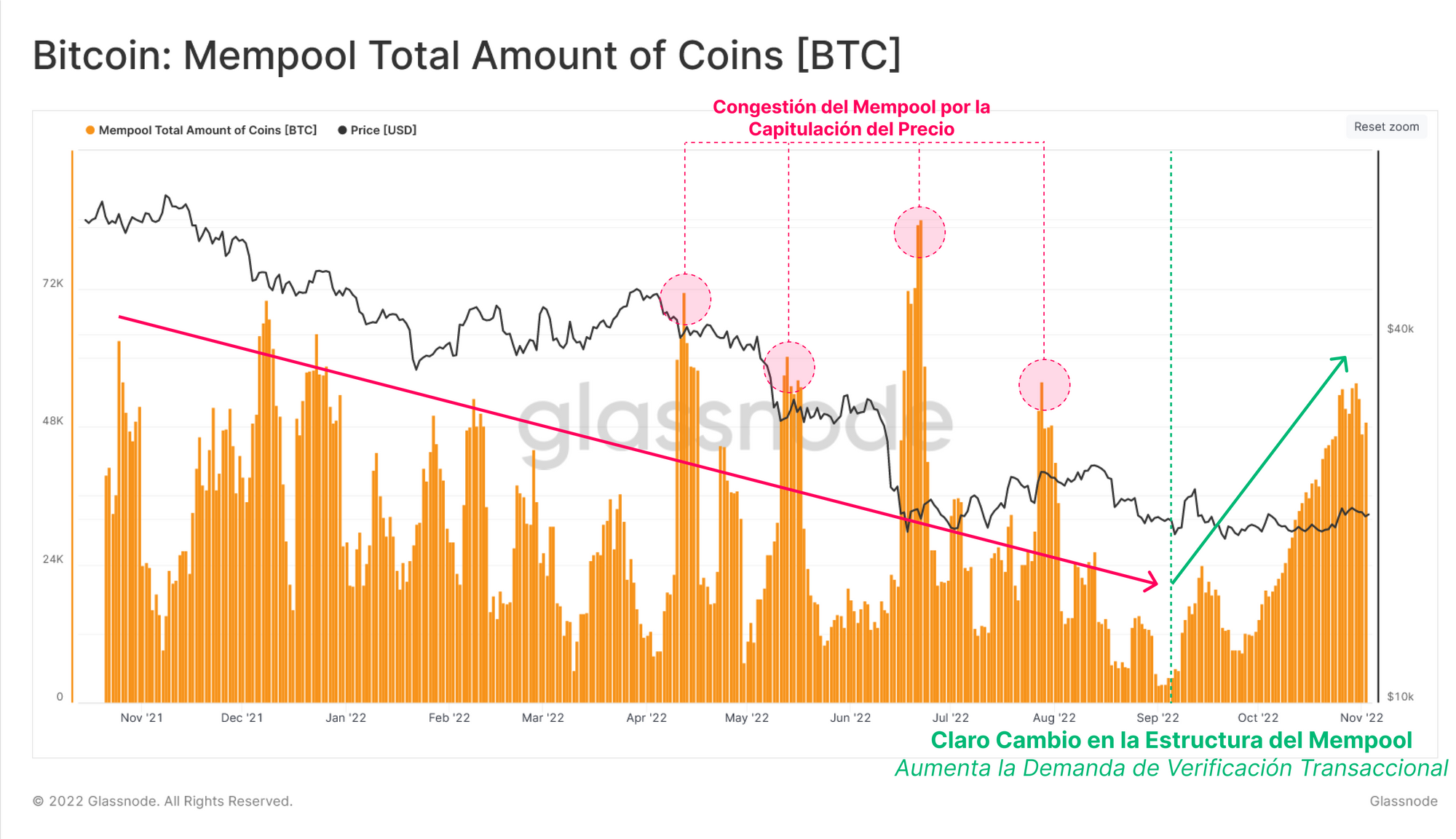 Se está produciendo un pequeño pero notable cambio en el ritmo de las transacciones de Bitcoin, que podemos observar en el impulso ascendente que se dibuja en la cantidad de monedas que se transfieren a través de nuestro nodo del Mempool. Este cambio de actitud que observamos constituye las primeras señales de que se puede estar produciendo un cambio muy positivo dentro del ámbito de la demanda.