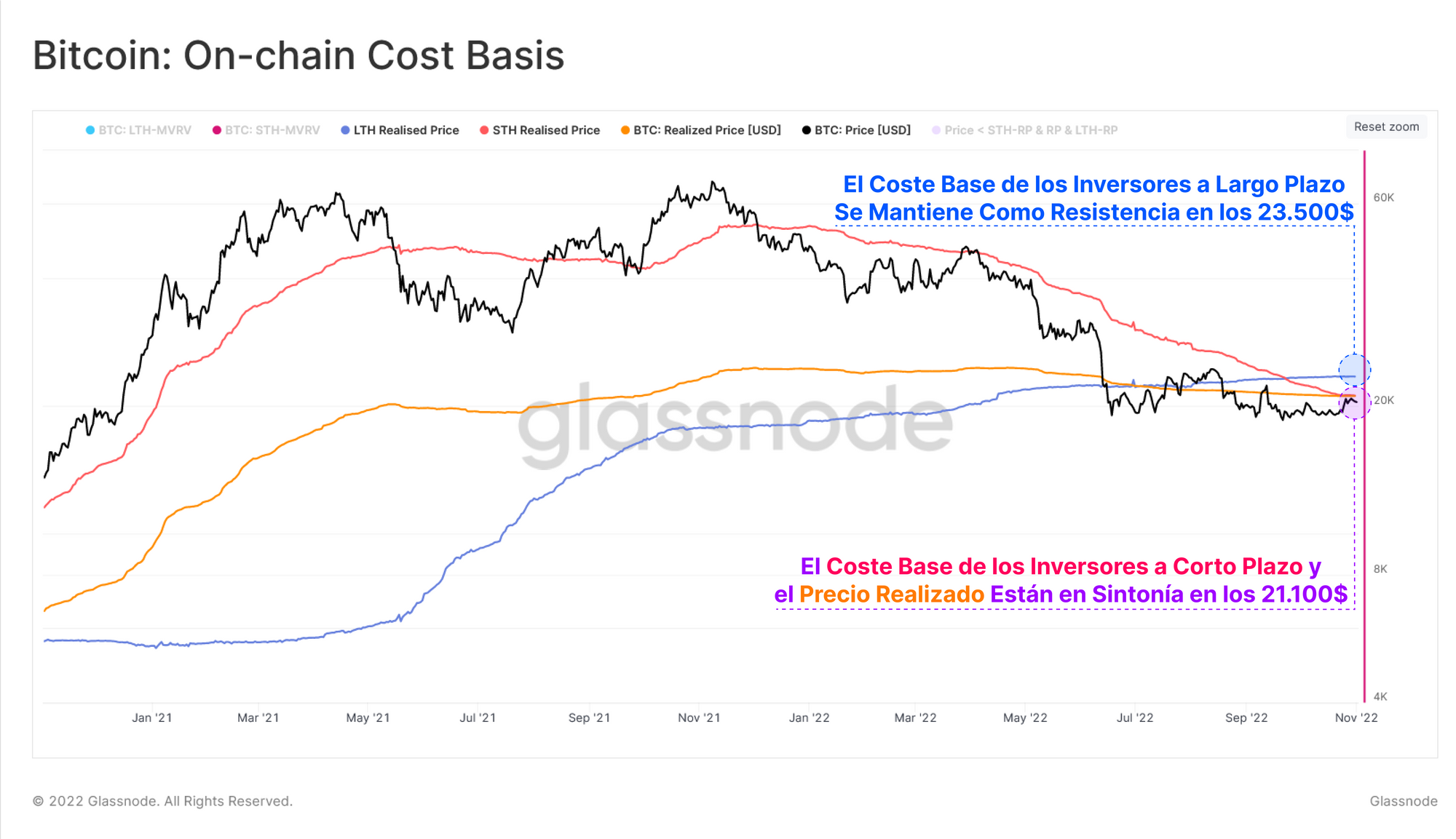 - El Coste Base 🔵 de los Inversores a Largo Plazo sigue estando aún por encima, cerca de los 23.500$, y será un área de alto interés para todos los inversores que han tenido que soportar la reciente volatilidad del mercado, pero que siguen estando inseguros en lo que respecta a la estabilidad de cara a un futuro.