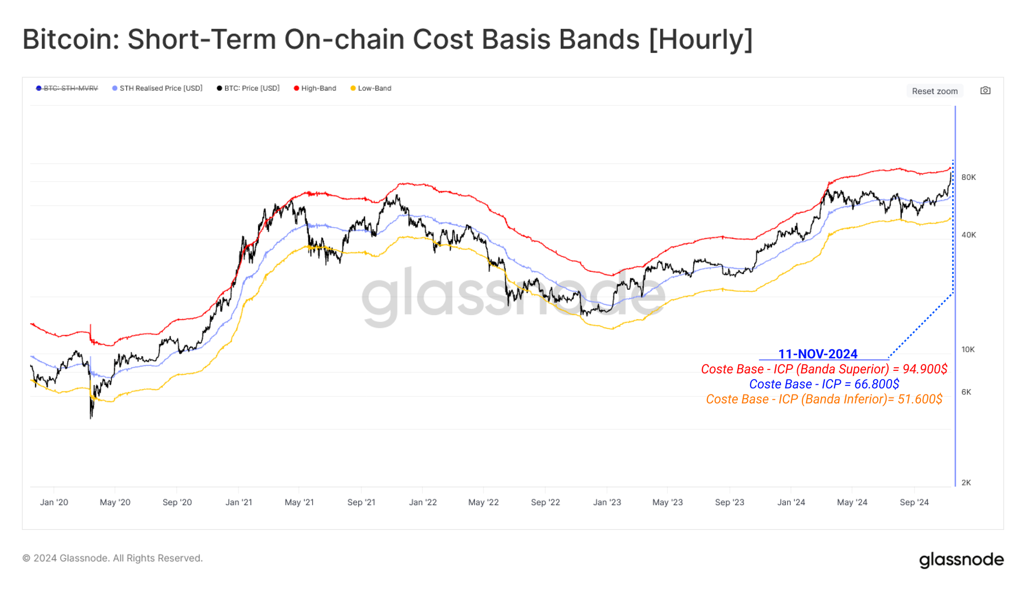 - Nos adentraremos en las bandas del coste base del blockchain para rastrear con precisión el impulso de la demanda actual, donde demostraremos cómo la proximidad a estas bandas puede revelar períodos de fuerte demanda en el mercado.