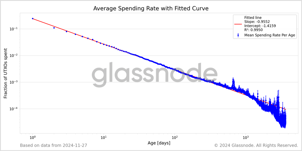 Estos hallazgos proporcionan una perspectiva continua sobre la edad de las monedas y su probabilidad de gasto, complementando el ya conocido concepto de inversores a largo plazo (ILP) y a corto plazo (ICP). La relación de la ley de potencias capta con precisión la transición gradual de un trading activo a una acumulación a largo plazo.
