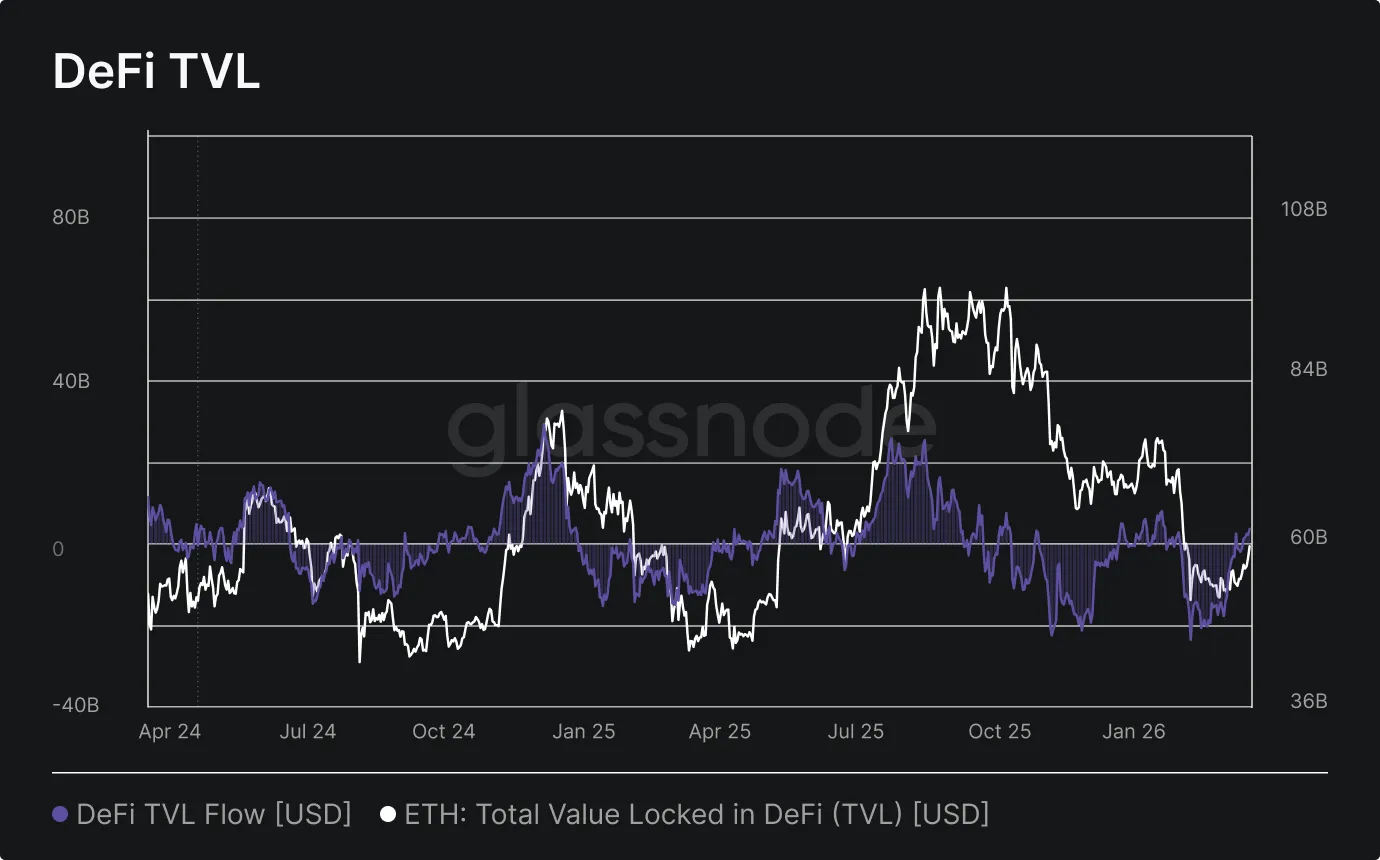 Total Value Locked on Ethereum recorded peak outflows of -$23.7B per month in February, implying sustained withdrawal by larger allocators from on-chain activities such as liquidity provisioning and yield strategies. This slowdown alone is insufficient to signal a reversal, and diminished conviction in DeFi risk-adjusted returns continues to point to shallower liquidity depth across the ecosystem.