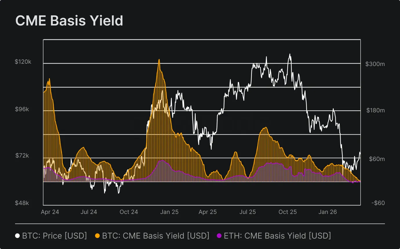 - CME Basis Yield compressed even further in February, reinforcing waning incentives for market-neutral strategies compared to January.