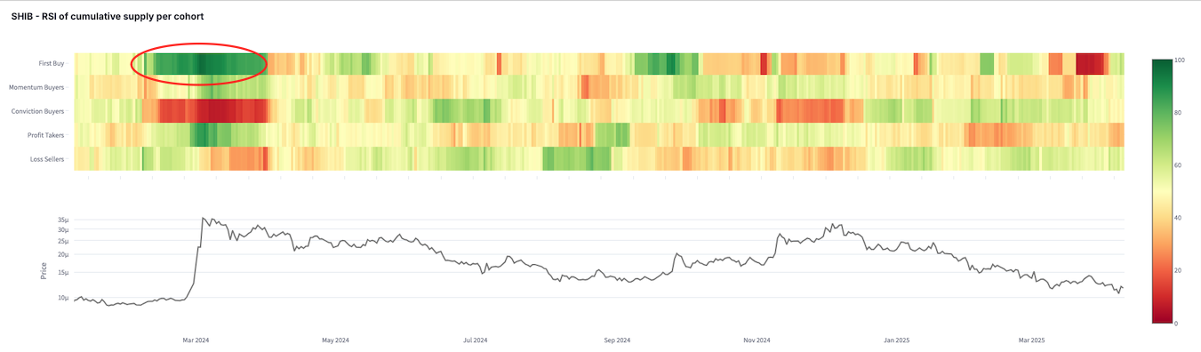 SHIB (March 2024): SHIB experienced a major wave of first-time buyers in March 2024 — a clear sign of retail-driven FOMO. As the price began to climb rapidly, hype kicked in, and new investors rushed in, eager not to miss out. This sudden influx of fresh demand is visible in the on-chain data as a strong spike in First-Time Buyers activity.