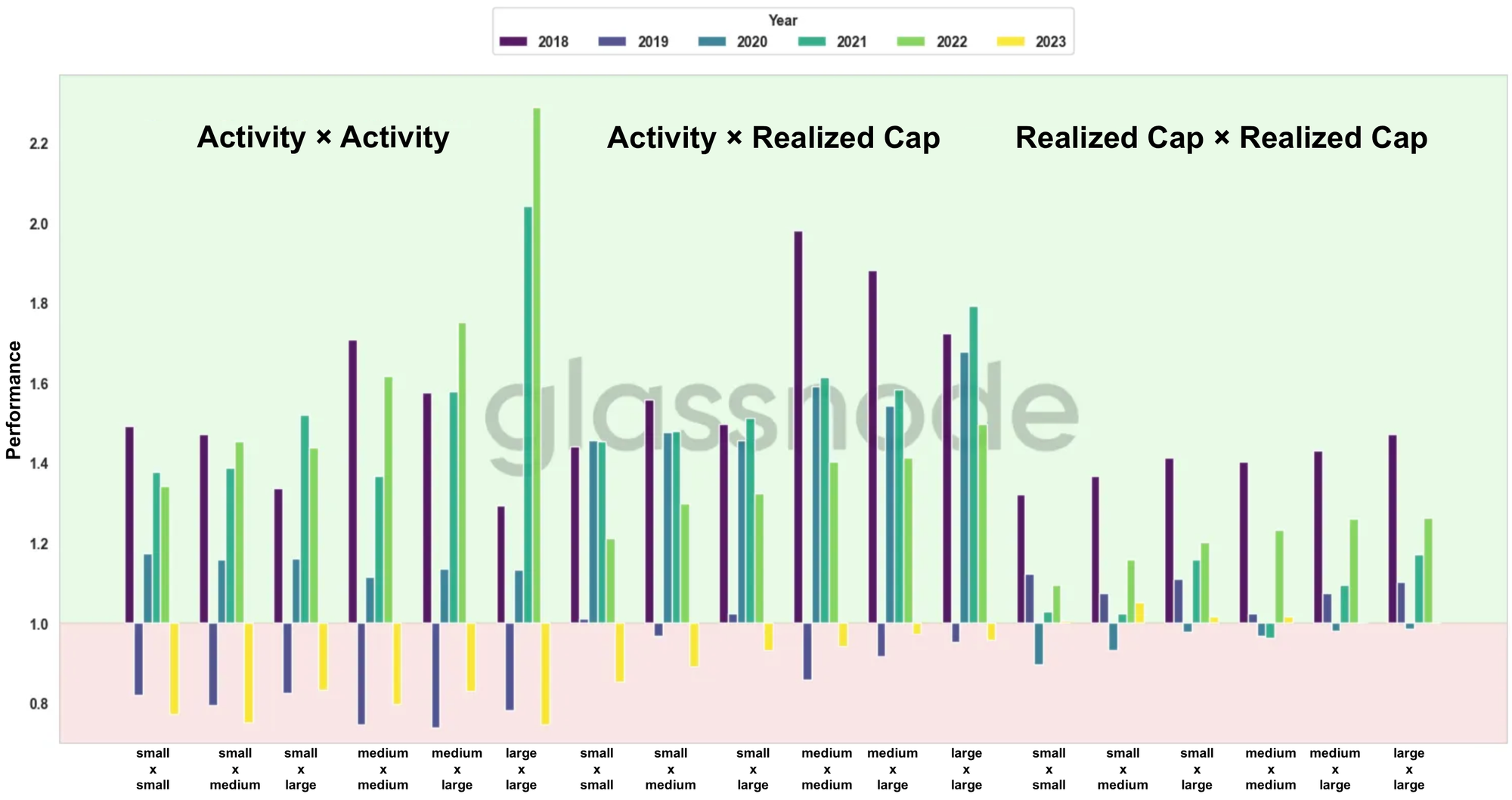 - Activity × Realized Cap: Mixed behavioral and valuation indicators