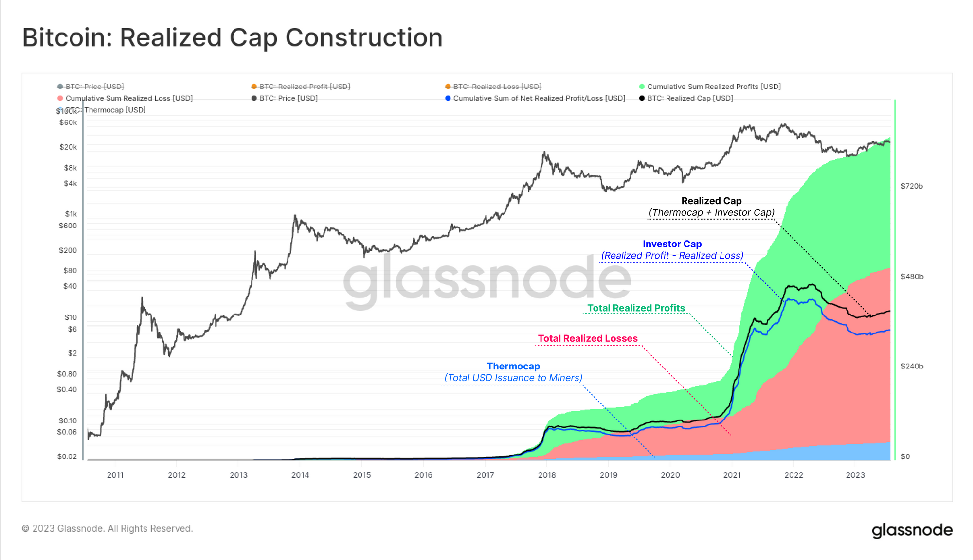 Metrics that are derived from, or components of the Realized Cap include Unrealized, and Realized profit and loss metrics. These tools are particularly suitable for market analysis and trade strategy development as they describe the motivating financial incentives (fear and greed) which drive investor decisions.