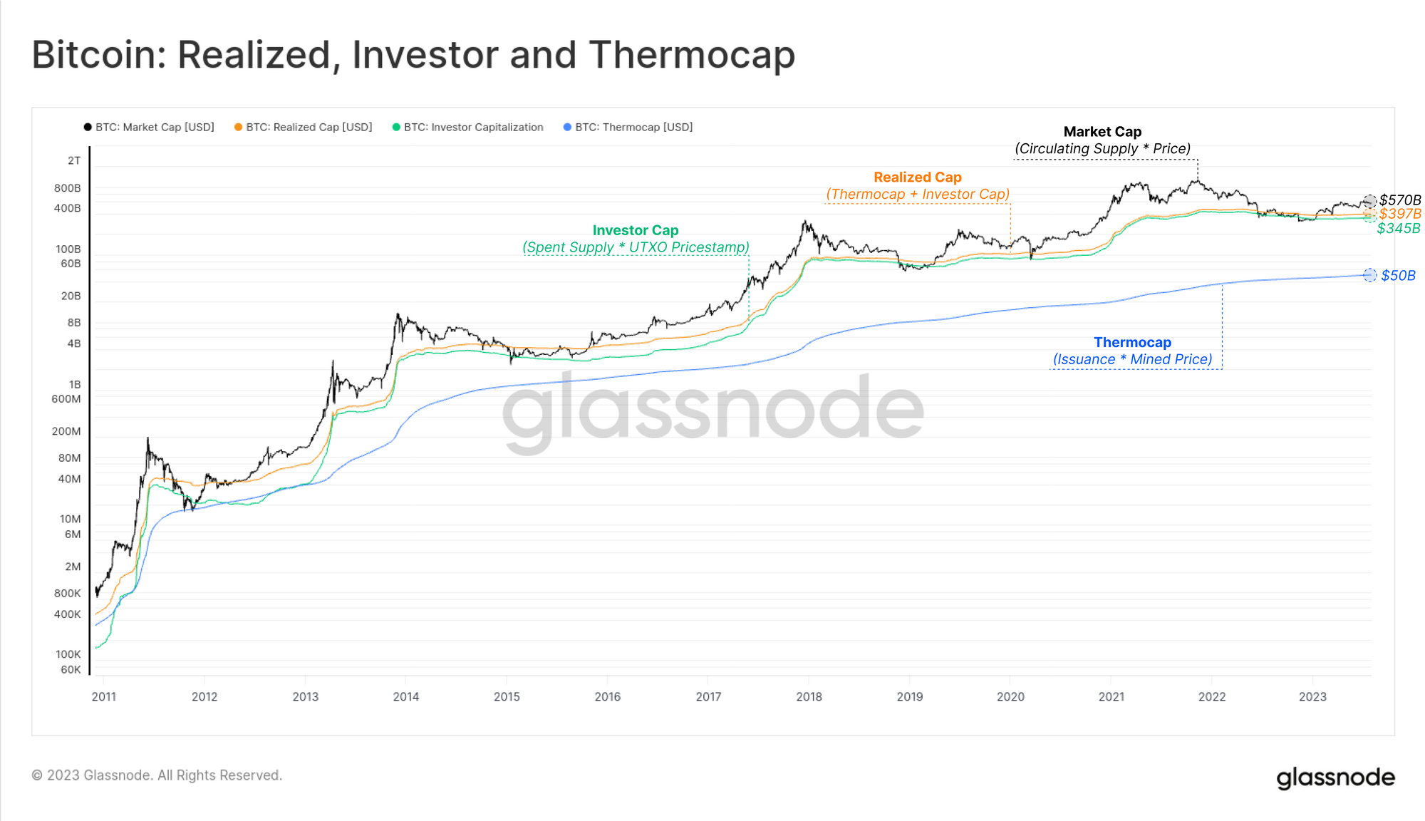 - Thermocap ($50B) which is the primary production market of BTC by miners.