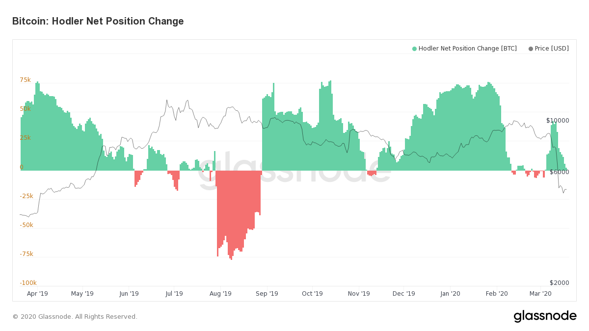 The Hodler Net Position Change metric shows that long-term bitcoin holders are buying the dip.