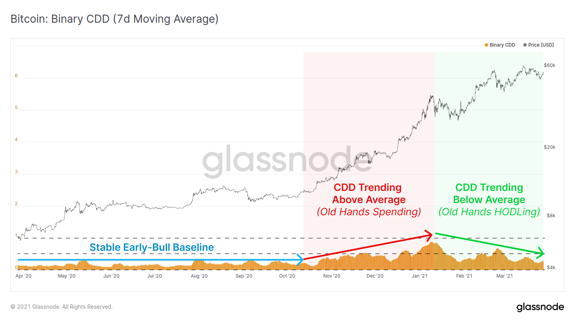 Hint: Applying moving averages to Binary CDD helps spot trends and filter noise from the indicator. Check out our improved metric explanations in Glassnode Academy for details.