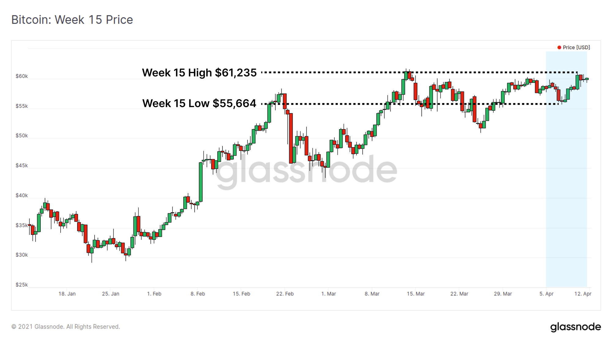 This week the Bitcoin market made another attempt at an ATH, with price rallying from a low of $55,664 to a weekly high of $61,235, just $448 off the peak set in mid-March. The market also saw growing excitement around the Coinbase direct listing, scheduled on April 14, as well as Grayscale's clarification around intent to convert the GBTC Trust into an EFT.