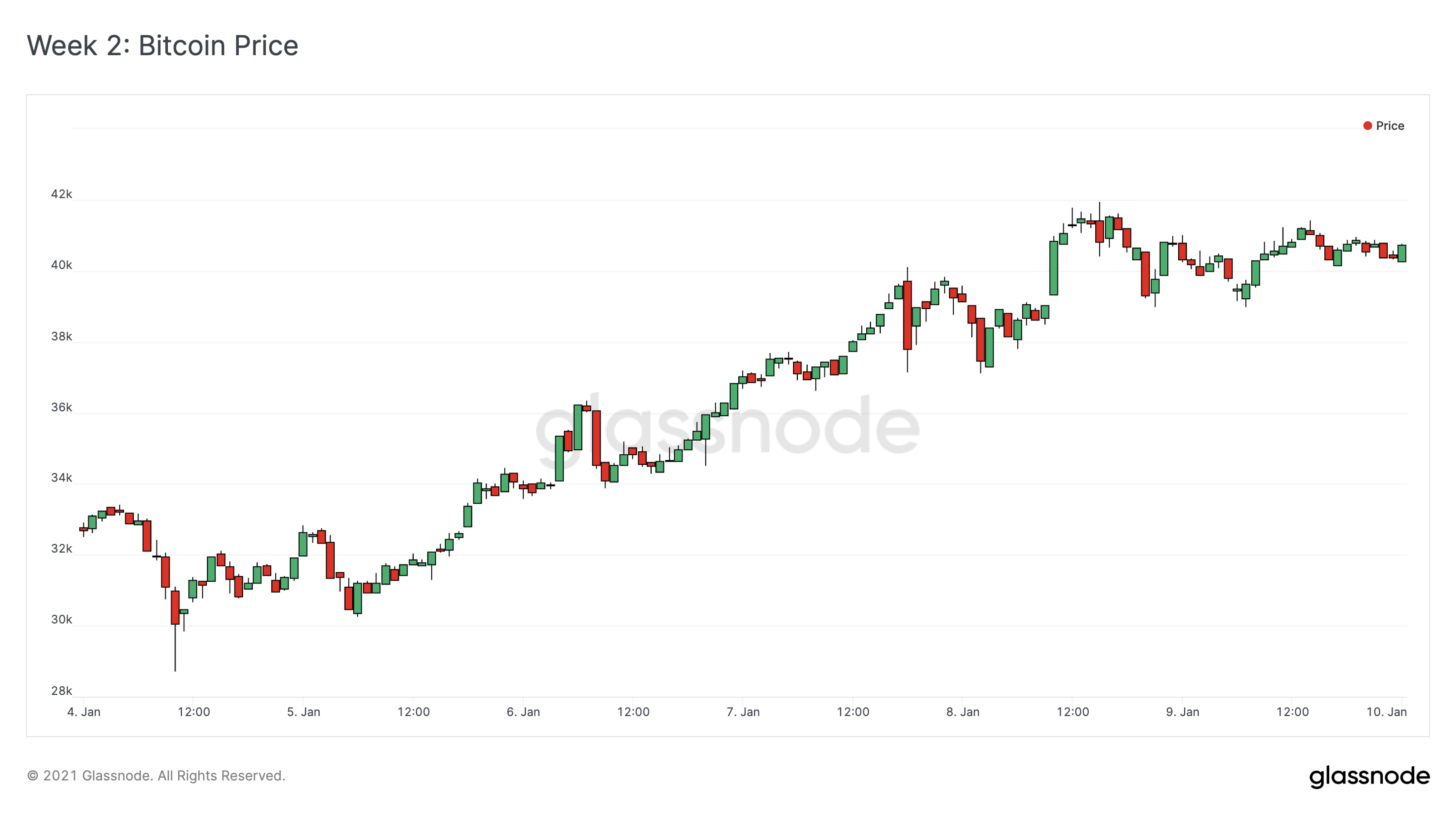 BTC had another stellar week, exceeding $40k for the first time ever - more than double its 2017 ATH. However, a correction and some sideways movement may be in order before further growth is seen.