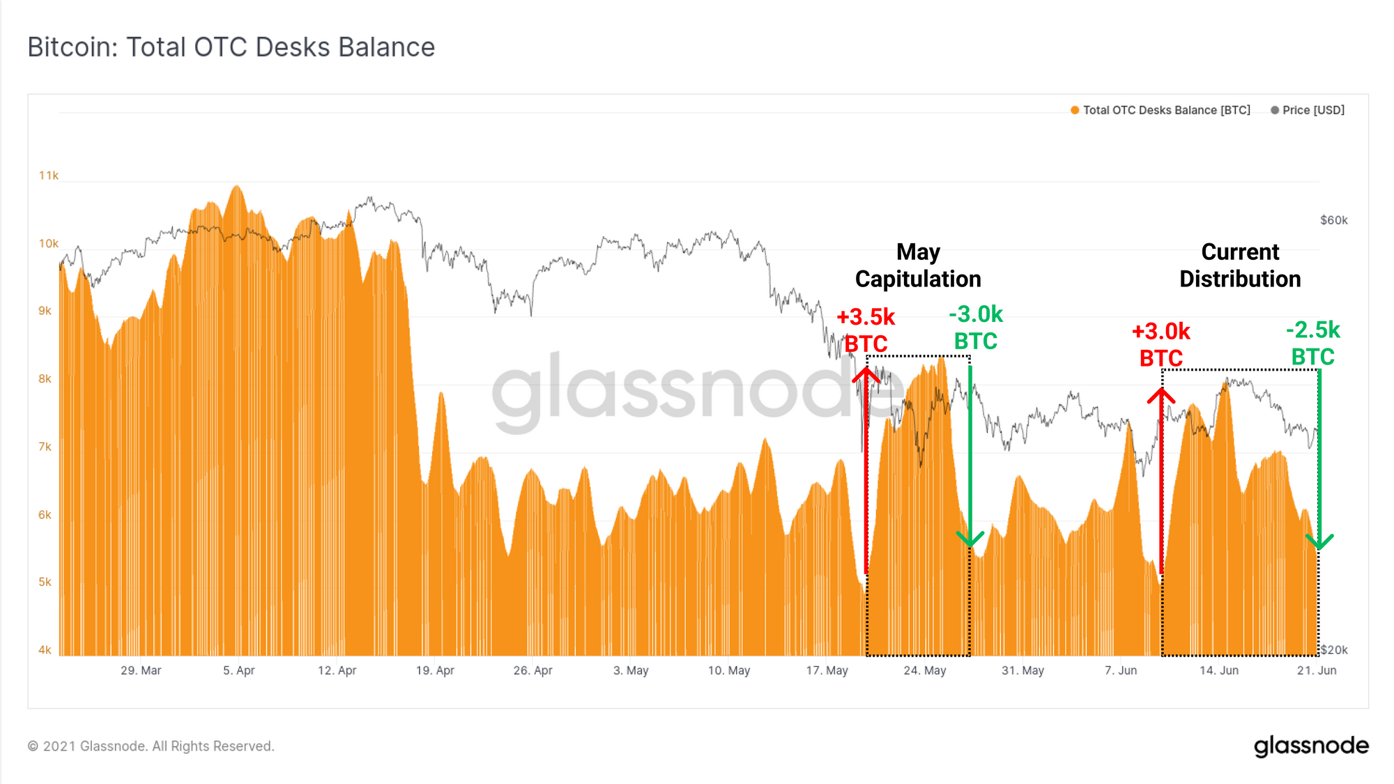 Finally, we take a look at the holdings on OTC desks which are utilised by miners for matching their large size distribution, with large volume buyers.