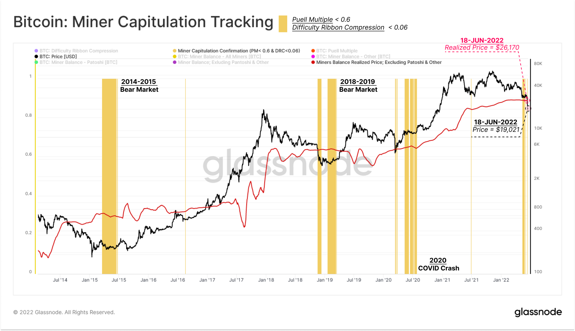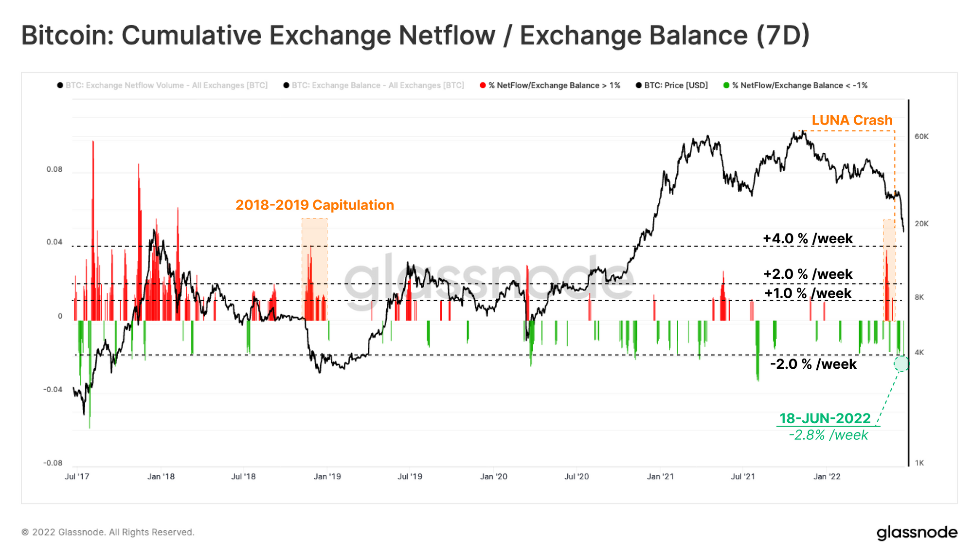 The Bitcoin market has reeled from a massive deleveraging event this week, both in on-chain DeFi markets and off-chain as exchanges, lenders and hedge funds being rendered insolvent, illiquid or liquidated. The market sold off below 2017 $20k ATH on 18-June, reaching a truly remarkable low of $17,708. Prices did, however, recover the $20k level on Sunday.