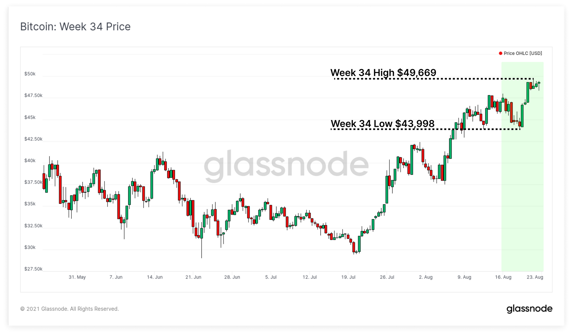 The Bitcoin market has experienced yet another strong week, with prices rallying from the weekly low of $43,998 to a new multi-month high of $49,669. Confidence, conviction and positive sentiment has followed this uplift in prices, as Bitcoin climbs closer to reclaiming its Trillion dollar valuation. The key level to break is $53k for Bitcoin to return to the 12-zero's club.