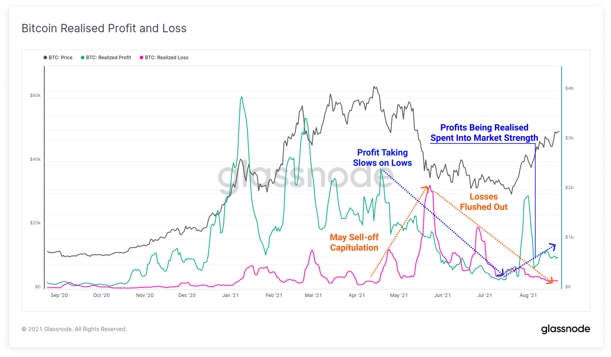 The decline in realised losses of late could indicate that investors have found renewed conviction to hold on, or are potentially taking exits that are closer to their original cost basis, as price recovers towards the $50k range.